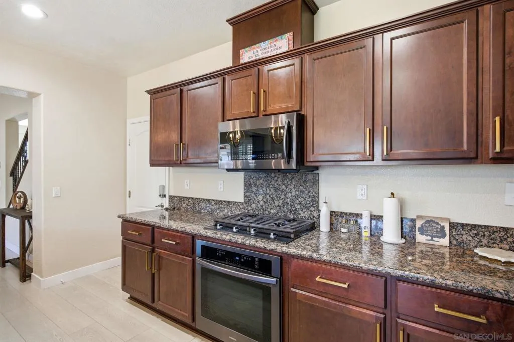 Striking two-story residence, 2,929 square feet, four-bedroom, three-bath, 5,025 square foot lot, 10-foot ceilings, and custom flooring throughout. The heart of the home is a large open-concept kitchen designed for both serious cooking and casual gathering. A generous island eating area serves as the ideal spot for morning coffee, homework sessions, or evening cocktails. Spacious living room with a fireplace—the ultimate hub for everyday living and effortless entertaining—a full-size bedroom and bathroom downstairs for in-law quarters, long-term guests. Upstairs, three additional bedrooms await, including a primary suite that offers double sinks, a separate soaking tub, a sleek, modern shower, and an oversized walk-in closet. One of the upstairs secondary bedrooms features its own private balcony. Private work area for privacy.