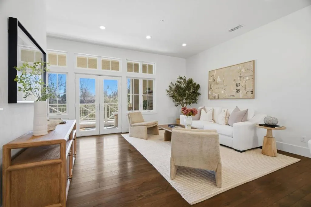 Trailside luxury just steps from Downtown Campbell! Welcome to this beautifully maintained end-unit residence in the coveted Madison community by award-winning Robson Homes. Perfectly positioned along the scenic Los Gatos Creek Trail, this home offers a rare blend of tranquil natural surroundings and vibrant walkable living just moments from restaurants, boutique shopping and the popular Sunday Farmers Market. Built just over eight years ago, the thoughtfully designed four-bedroom floor plan features a private ground-floor guest suite ideal for visitors or a home office, plus three bedrooms upstairs including a spacious primary suite with vaulted ceilings and peaceful creek trail views. At the heart of the home, the elegant island kitchen features quartz countertops, custom cabinetry and premium Viking appliances with additional space to gather and entertain. The light-filled great room showcases soaring 10' ceilings, rich hardwood floors and oversized windows, while French doors open to a large covered balcony overlooking the Los Gatos Creek Trail-- perfect for morning coffee or evening relaxation. Just moments from the Pruneyard, Campbell Park and major Silicon Valley employers, this is a rare opportunity to enjoy refined comfort in one of Campbells most desirable locations.