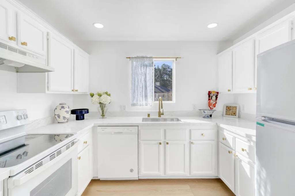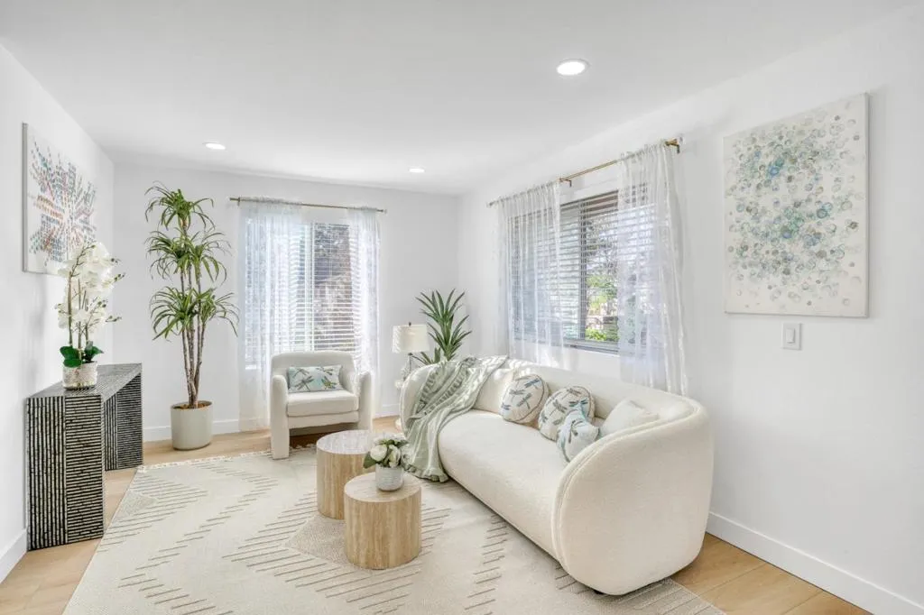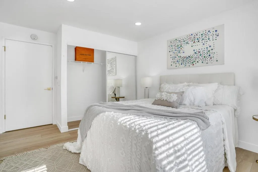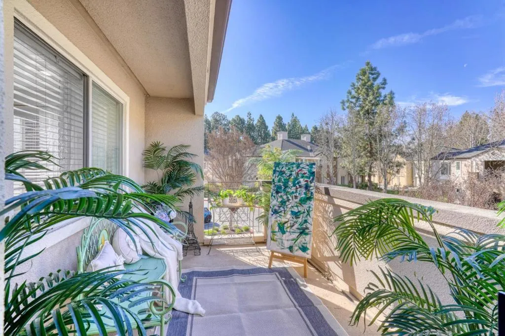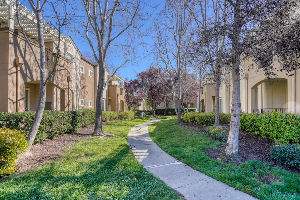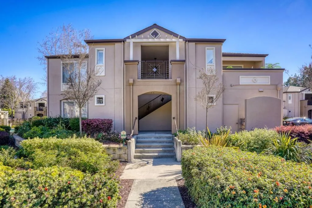 Rare townhouse-style condo in the desirable Crescendo community, ideally positioned on a quiet interior corner with open views and abundant natural light. This upper-level 1-bedroom, 1-bath home offers uncommon privacy with no neighbors above or below, plus an attached garage with a dedicated storage room and built-in shelving. The community also offers ample additional and guest parking throughout, a rare and convenient feature for the area. The open living and dining area connects seamlessly to an oversized private patio through dramatic floor-to-ceiling glass doors, creating an exceptional indoor-outdoor space rarely found in a condo. Open, airy, and well-separated from neighboring buildings, the setting feels bright and inviting. Recent updates include new flooring, fresh interior paint, white quartz countertops, light gold fixtures, modern lighting, and in-unit washer and dryer. Residents enjoy resort-style amenities including a pool, spa, and beautifully landscaped grounds. Prime North San Jose location near major employers including Nvidia and Cisco, as well as Rivermark, Levis Stadium, Light Rail, and convenient freeway access.