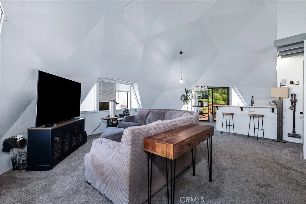 Welcome to this one-of-a-kind geodesic dome home tucked away at the end of a quiet cul-de-sac in Heritage Ranch, backing to a greenbelt with beautiful tree-covered mountain views. This unique property offers privacy, character, and a setting that feels connected to nature. The remodeled kitchen features quartz countertops, a single-basin sink, subway tile backsplash, open shelving, vinyl plank flooring, and a clean, modern design perfect for lake or everyday living. Downstairs you’ll find three bedrooms and two bathrooms, offering comfortable accommodations and functional living space. Upstairs, the main living area includes a convenient half bath and opens to expansive decking, ideal for entertaining, relaxing, and enjoying the surrounding scenery. Additional features include a spacious carport, approx 1 yr old water heater, and carpet replaced in 2022. With its distinctive architecture, scenic location, and breathtaking views, this geodesic dome home offers a rare opportunity to own something truly special just outside of Paso Robles with all of the amenities Heritage Ranch at Lake Nacimiento has to offer.
