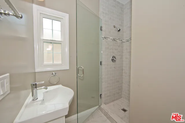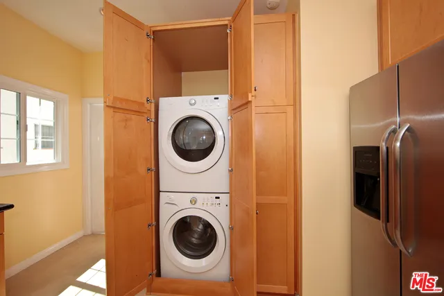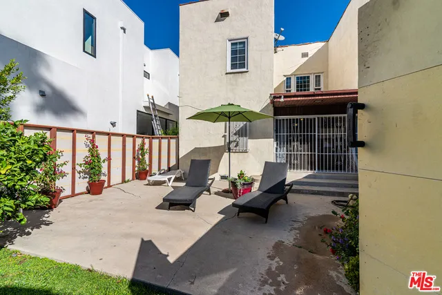 BEAUTIFULLY REMODELED UPPER UNIT OF DUPLEX IN BEVERLY GROVE. This gorgeous 1930s light and bright Spanish duplex offers three bedrooms, two bathrooms plus a bonus den/office. An expansive designer kitchen offers stunning cabinets and fixtures, double stainless steel sink, stainless steel appliances, including stove, microwave, double door refrigerator, dishwasher, granite countertops, front loading washer and dryer, recessed lighting and tile floors. Both bathrooms have been fully redone including beautiful tile floors and frameless glass shower doors. Energy efficient windows have been installed throughout. The unit also features gleaming hardwood floors, a formal dining room, beautiful archways, elegant brick mantel and large picture window, central AC, custom spacious closets, custom window treatments, front and rear entrances, private garage and driveway parking, use of private, secure garden and yard. Ideally located steps from 3rd Street, the Grove, Cedars and Hancock Park Elementary.