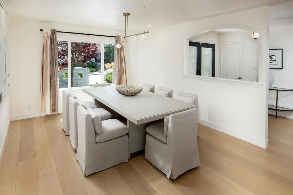 Stunning single-level home with mesmerizing, panoramic views of the Bay and hills of San Carlos. The property features effortless living, no steps and flat front, back, and side yards, creating a rare combination of accessibility and outdoor enjoyment. An expansive view deck, perfect for relaxing or entertaining while soaking in the breathtaking scenery. The outdoor space offers a built-in BBQ and stone patio, making it ideal for hosting gatherings against a spectacular backdrop. Beautifully updated in 2023, the light-filled interior has wide-plank light floors, quartz countertops, updated bathrooms, built-in closets, and restyled built-ins. A see-through fireplace with updated stone adds warmth and elegance between living spaces. The designer white kitchen is functional and sophisticated, featuring a Wolf cooktop, stainless steel appliances, and workspace. Spacious utility room with newer washer and dryer offers storage and convenience. Additional highlights include a two-car garage with epoxied flooring, solar system w/ battery backup, electric vehicle hookup, sink, and upper storage. This light, bright, and beautifully upgraded view home offers a rare opportunity to enjoy modern comfort, effortless indoor-outdoor living, and some of the most captivating views in San Carlos.
