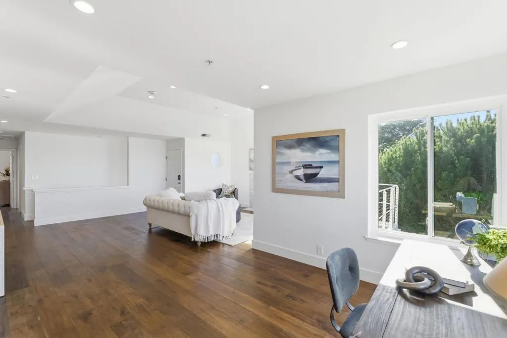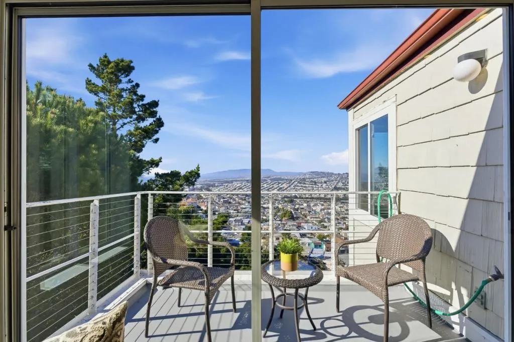 Beautifully updated condo offering spacious interiors, and sweeping city and coastal views. The main living area features hardwood flooring, recessed lighting, high ceilings, and a cozy gas fireplace that anchors the bright living room. The deck off the living room captures impressive views toward Lake Merced, Ocean Beach, Twin Peaks, and the downtown SF skyline. The updated kitchen combines style and functionality with quartz countertops, SS appliances, and modern cabinetry. High ceilings in both the living room and bedrooms enhance the open, airy feel of the home. The primary suite also features a private deck and spacious bathroom, fully tiled, double sinks and a modern stall shower. Residents enjoy access to a variety of community amenities including a clubhouse with event space, kitchen, and lounge area available for private gatherings, fitness center and dry sauna, beautifully landscaped grounds with scenic sitting areas and gated entry for added privacy. The community also offers expansive greenbelt areas and direct proximity to the trails of San Bruno Mountain State Park. With thoughtful upgrades throughout, multiple outdoor deck spaces, and access to amenities, this home offers a rare blend of comfort, convenience, and stunning Bay Area views.