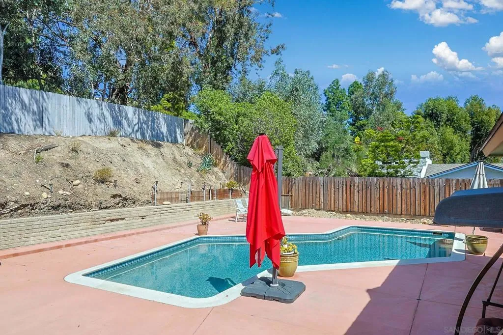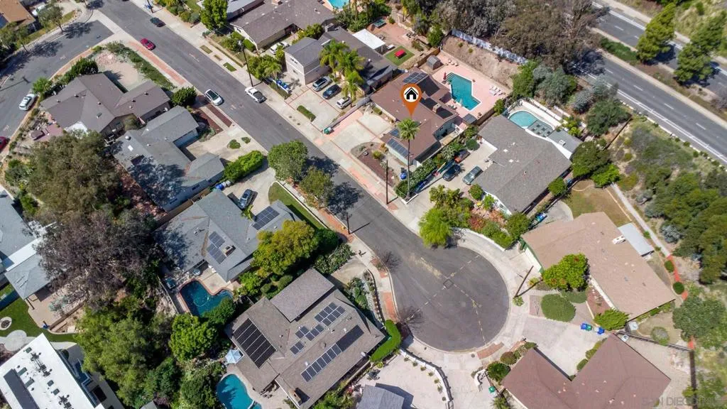 Move-in ready 4 bedroom, 2 bathroom single story home on a desirable cul-de-sac featuring a resurfaced saltwater pool and two fully paid solar systems, one serving the home and the other dedicated to the heated pool. Bright, inviting living spaces are filled with natural light and designed for comfortable everyday living and effortless entertaining. The remodeled kitchen offers modern finishes and newer appliances, including an oven, microwave, and dishwasher purchased within the past year. Additional highlights include red oak wood flooring, security cameras, a full alarm system, and a roof with a lifetime warranty. The private backyard is ideal for California indoor-outdoor living, with a spacious concrete pool deck, gas fire pit, and recently resurfaced saltwater pool, perfect for relaxing or entertaining. Additional upgrades include EV charger hookups and wiring for a future hot tub. Conveniently located near San Diego State University, parks, shopping, dining, and major freeways, this home offers comfort, efficiency, and long-term flexibility. The expansive lot also offers ADU potential, creating opportunities for future expansion, multigenerational living, or investment potential. Buyer to verify with city.