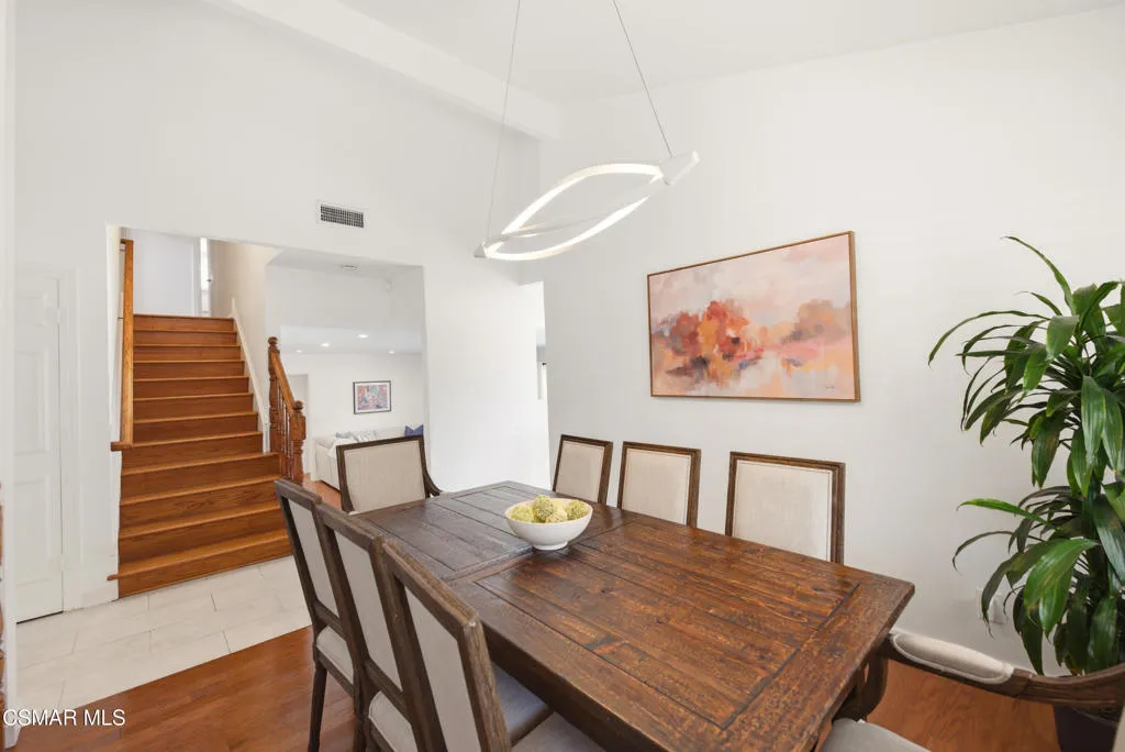 Welcome to this beautifully updated 4-bedroom, 3-bathroom home in the highly desirable Foxmoor community of Westlake Village, where comfort, style, and location come together. Just minutes from top-rated Westlake Elementary School, this move-in ready home offers the ideal blend of space, upgrades, and a functional family-friendly layout. A grand entry with vaulted ceilings opens to light-filled living and dining spaces, while the updated kitchen with dual-pane windows flows seamlessly to a private patio--perfect for everyday living and effortless entertaining. The spacious family room features hardwood floors, a wet bar, and dual sliding doors leading to a private backyard with a sparkling pool and spa, creating the ultimate indoor-outdoor lifestyle. With a downstairs bedroom and full bath, flexible living options are built in--ideal for guests, a home office, or multi-generational needs. Upstairs offers three additional bedrooms with custom closets and hardwood flooring, including a generous primary suite designed for comfort and retreat. The upgraded 3-car garage adds exceptional functionality with built-in storage, workspace, TV hookups, and a durable epoxy-polyurethane floor. Enjoy recent upgrades including a newer roof and HVAC system. Ideally located close to Foxmoor's sought-after amenities--community pool, clubhouse, playground, greenbelt walking paths, as well as the elemtnary school. Homes like this in Foxmoor don't come up often--don't miss your opportunity to own in one of Westlake Village's most coveted neighborhoods.