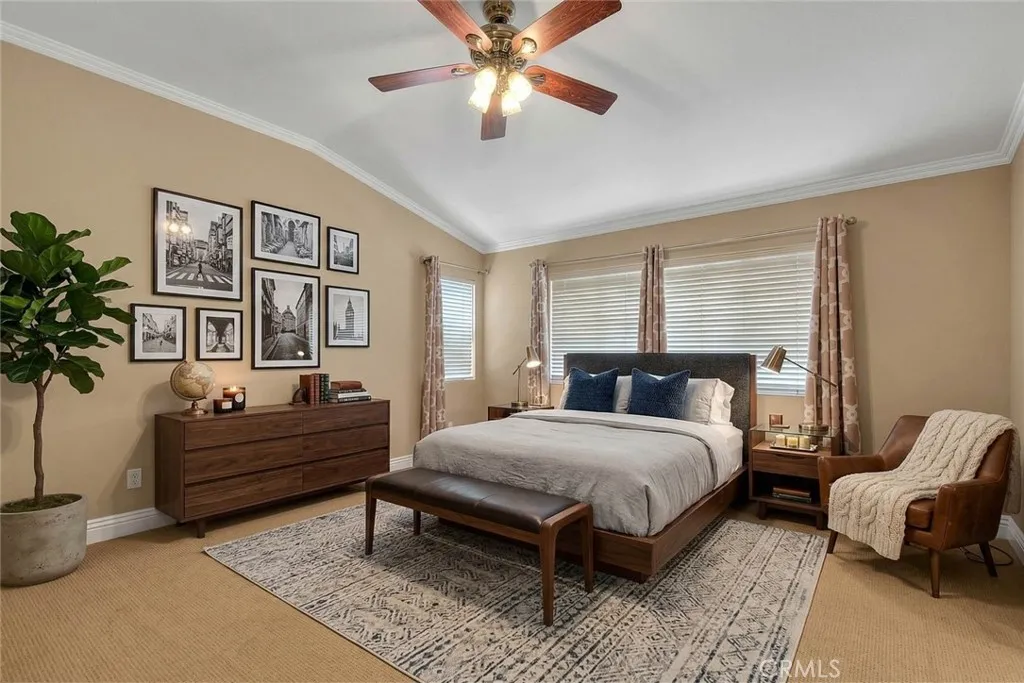 Nestled in a highly desired Chino Hills neighborhood, this inviting two-story home is move-in ready. Upon entering, you’ll appreciate the spacious formal living with vaulted ceilings and dining room—an ideal setting for entertaining family and friends. The dine-in kitchen offers ample cabinet and counter space, highlighted by granite countertops and new stainless steel appliances. The cozy family room features a stone fireplace and a built-in entertainment niche pre-wired for surround sound, creating a warm and welcoming place to relax. The main level also includes an unpermitted 5th bedroom and a remodeled full bathroom. Upstairs, the primary suite offers a dual-sink vanity, large soaking tub, separate walk-in shower, and a generous walk-in closet. Three additional bedrooms, large linen cabinets, a full bathroom with dual vanities, and a dedicated laundry room complete the upper level. Note, home also includes city permitted plans to add an additional 300 square foot loft space and 4th ensuite bathroom upstairs. The backyard features raised planters with mature fruit trees - including orange, lime, and pomegranate and provides a wonderful space for gatherings or quiet evenings outdoors. Additional amenities include a level 2 EV charger in the garage w/new smart garage door opener, a wirelessly controlled whole house attic fan, a new HVAC system, and paid-off solar panels for low electricity costs. Located close to coffee shops, parks and just minutes from premier shopping, dining, and top-rated schools, this home offers both lifestyle and location. Don’t miss the chance to make it yours.