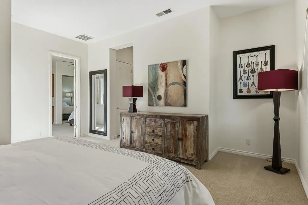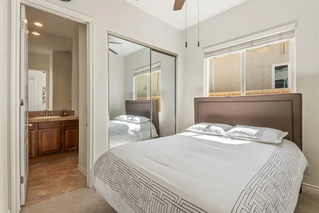 Gorgeous home in the highly desirable gated community of The Bridge at Jefferson, situated on one of the largest lots in the neighborhood with beautiful mountain views. Enter through an artistic metal gate into a private courtyard featuring a tranquil water feature. Double entry doors welcome you into a spacious open floor plan designed for both comfort and entertaining. The backyard is a private desert oasis with lush landscaping, a large saltwater pool and spa, and an expansive covered patio--perfect for outdoor gatherings or relaxing in the shade. The gourmet kitchen features stainless steel appliances, slab granite countertops, rich cherry cabinetry, and ample space for preparing memorable meals. Guests will appreciate the attached casita with private entrance and direct access to the home, offering comfort and privacy. The spacious primary suite serves as a peaceful retreat with a walk-in closet and spa-style bath. The finished two-car garage includes epoxy flooring, mini-split A/C, and a 240V outlet. Additional upgrades include a variable-speed pool pump, new chlorine generator, reverse osmosis system, whole-house water softener, fiber ethernet, landscape lighting, and ceiling fans throughout (see list attached to the MLS). Ideally located near world-class golf, hiking, shopping, and dining, and just minutes from the Indian Wells Tennis Garden, PGA events, and the Coachella and Stagecoach festivals, this beautifully maintained home offers the best of desert living.