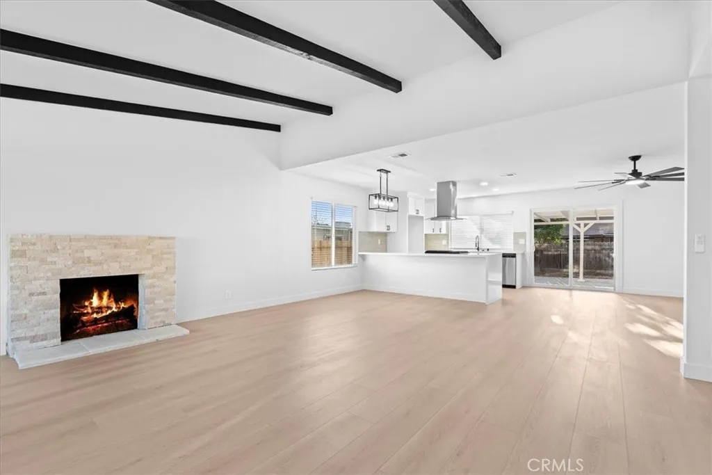 Price Improvement!! Welcome to this beautifully remodeled single-story 4-bedroom home on a desirable corner lot situated on a cul-de-sac street. Thoughtfully updated inside and out, the property offers potential RV parking (and more), fresh exterior and interior paint, new dual-pane windows, a new vinyl slider, extensive new fencing, and attractive low-maintenance landscaping. New heating and air condition system as well, WOW!! Step inside to dramatic open-beam vaulted ceilings that flow into a large, open kitchen featuring a breakfast bar overhang, new shaker-style cabinets, quartz countertops, and stainless-steel appliances. The home has all-new wood-look flooring in the living areas and plush carpet in the bedrooms, complemented by Craftsman baseboards and casings and modern designer finishes throughout. Bathrooms have been tastefully renovated with new vanities and showers. Enjoy a generous backyard with a covered patio — perfect for entertaining and outdoor living. Additional perks include the cost effective tax rate and no HOA. This turnkey home blends contemporary finishes with single-level convenience — schedule a showing today!