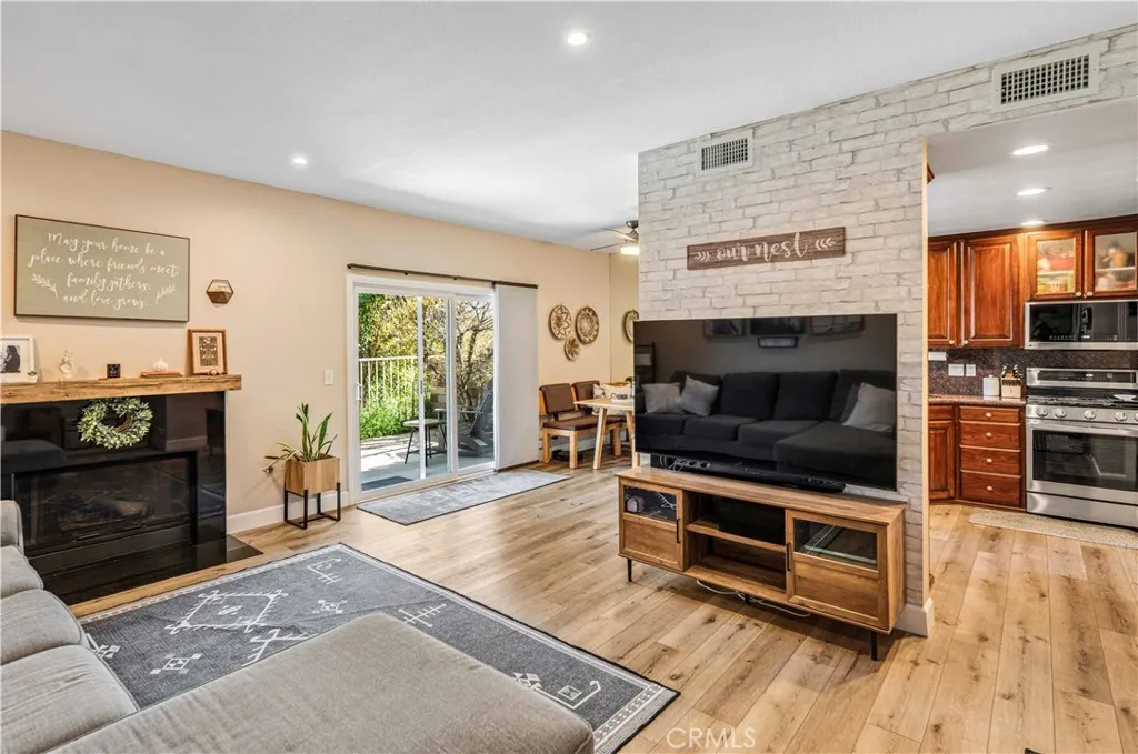 Now is the time to see this beautiful townhome in the Mountainview Courtyards community! Enter the home and step down to the living room area with lovely plank flooring and a cozy fireplace! Open, easy access to the dining area and updated kitchen with granite countertops and stainless-steel appliances. Upstairs you will find 2 bedrooms with attached private bathrooms (one with a small balcony too) and a good-sized, multi-purpose loft, perfect for an office, play area, workout area or possible 3rd bedroom (BTV)? This home features a newer HVAC system and almost all of the windows have been replaced including the rear slider which opens to your private rear yard area that backs a greenbelt. Enjoy this wonderful community with three community pools, two playgrounds, walking paseos and nearby park! All this with low HOA fees and No Mello Roos! Wow! See this now!