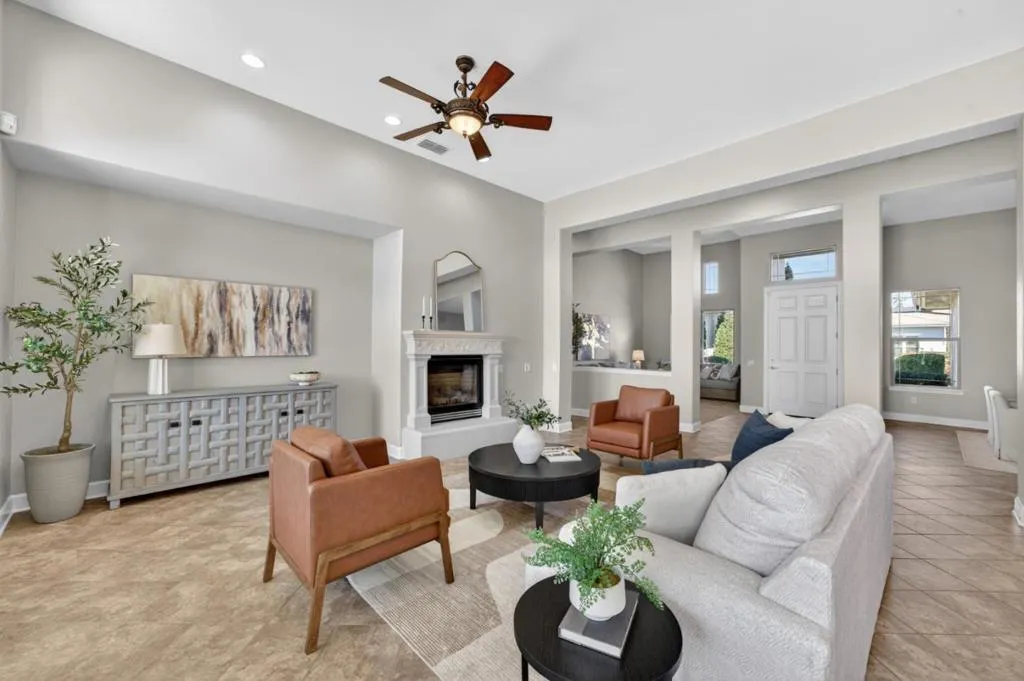 ENJOY THE RELAXED, RESORT-STYLE LIVING AT SUN CITY LINCOLN HILLS, A PREMIER 55+ COMMUNITY BUILT BY DEL WEBB* SPECTACULAR SANTA BARBARA FLOORPLAN WITH CASITA* FEATURES AN ARRAY OF AMAZING UPGRADES & AMENITIES, HIGH CEILINGS, TILE FLOORING, NEW CARPET* NEW CUSTOM INTERIOR PAINT, TILE COUNTERTOPS IN KITCHEN, DESIGNER CABINETS* STAINLESS STEEL APPLIANCES, RECESSED & PENDANT LIGHTING, BREAKFAST BAR, SPACIOUS DINING AREA* FORMAL LIVING ROOM, FORMAL DINING ROOM* OFFICE/DEN, GLASS FRENCH DOORS, SEPARATE GREAT ROOM, PLENTIFUL NATURAL LIGHT, FIREPLACE WITH MANTLE* SLIDING GLASS DOOR LEADING TO BACKYARD, LAUNDRY ROOM* BUILT-IN CABINETS, SINK, PEACEFUL AND SPACIOUS PRIMARY SUITE W/ RETREAT, SLIDER TO BACKYARD* PLANTATION SHUTTERS, DBL-SINK VANITY, SOAKING TUB, STALL SHOWER* BACKYARD WITH AMAZING SUNSET VIEWS, PRISTINE LANDSCAPE, WATER FEATURE* 3-CAR GARAGE, AUTO OPENER, BUILT-IN STORAGE CABINETS* EPOXY FLOORING* PRIME GOLF COURSE LOT, CLOSE TO PARKS, SHOPPING, EASY FREEWAY ACCESS. DON'T MISS THIS BEAUTY!