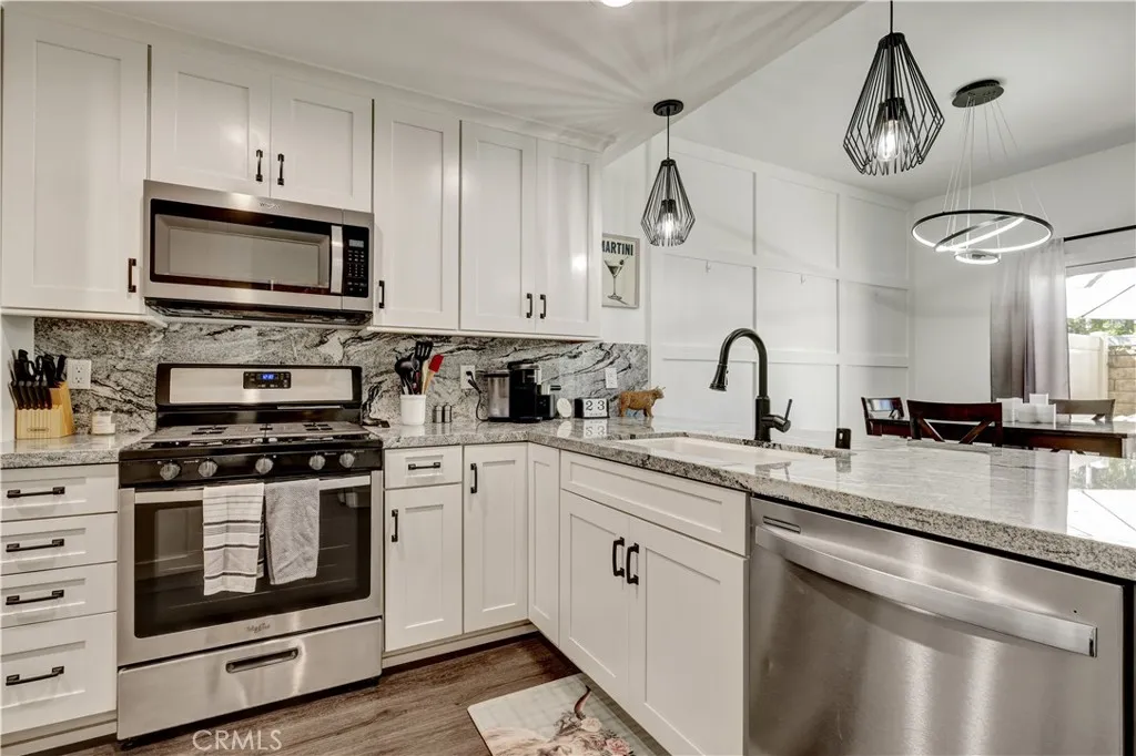 Beautiful and customized light and bright 3-bedroom, 2.5-bath townhouse located in a desirable Santa Clarita/Saugus community. This tastefully updated home features modern fixtures, stainless steel appliances, plantation shutters, newer dual pane windows, entry way pull out storage system, and high-quality vinyl plank flooring throughout. The spacious kitchen offers abundant cabinet and countertop space, making it perfect for cooking and entertaining. Enjoy the charming private patio, complete with an additional gate for convenient access. The primary bedroom features a large walk-in closet, while one of the secondary bedrooms also includes its own smaller walk-in closet. An attached two-car garage provides easy and direct access into the home. Residents of the community also enjoy fantastic amenities including a pool and clubhouse, perfect for relaxing or socializing.