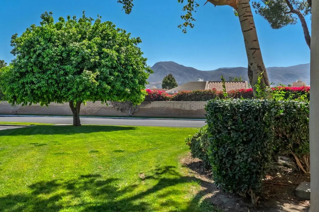 Welcome to this charming first floor condominium located in a quiet gated community, offering the perfect balance of convenience and tranquility. Residents enjoy resort-style amenities including a large community pool and several other smaller pools, an inviting clubhouse, fully equipped fitness center, and both tennis and pickleball courts.Inside, the home has been thoughtfully updated with new laminate wood flooring throughout, stylish new window treatments, and all-new Decor switches and outlets for a clean, modern touch. The kitchen features a brand-new dishwasher, making everyday living easy and efficient.Step outside to the generous private patio that overlooks a beautifully maintained, expansive lawn area--an ideal spot to relax or enjoy morning coffee in a peaceful setting. Conveniently located approximately one mile from Highway 111, this home provides easy access to the shopping, dining, and entertainment in nearby Palm Springs and Palm Desert.A wonderful opportunity to enjoy comfortable desert living in a well-maintained, amenity-rich community. Make your appointment to see this hidden gem today!