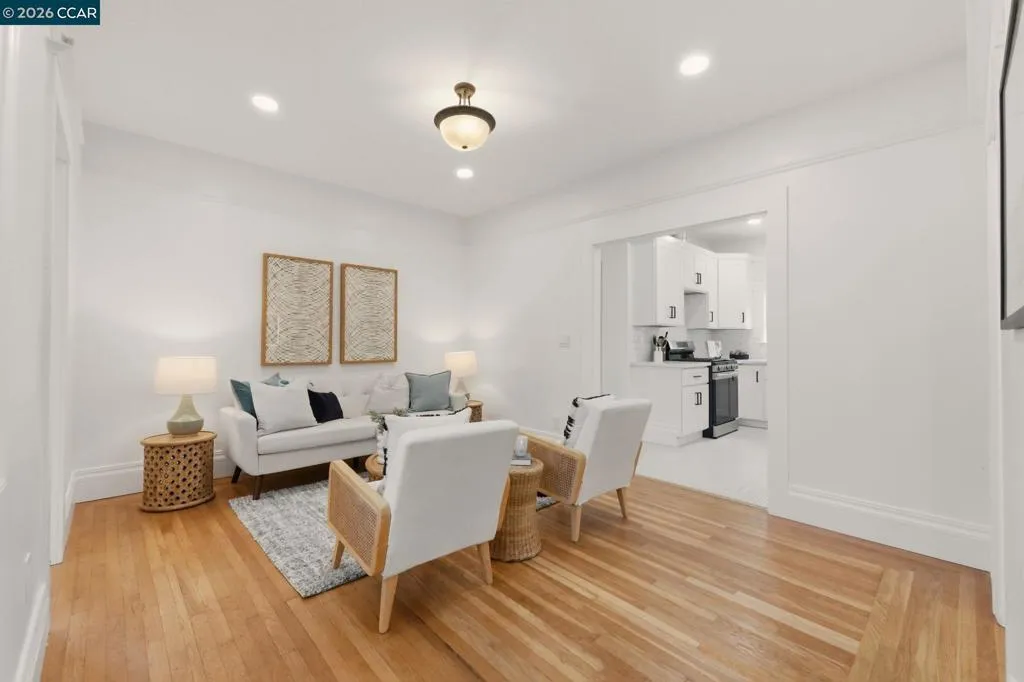 Dreamy duplex in Berkeley! Recently remodeled with an eye towards its history, this special property features two units, one on each level. The first level includes charming period details, including a built-in buffet cabinet, board and batten siding and oak hardwood floors. The kitchen and bathroom have been extensively updated with modern cabinets and tile flooring. Upstairs, the second unit has an open layout with spacious living/dining area, renovated kitchen/bath, and two light-filled bedrooms. Both units include in-unit laundry areas, separate water heaters and individual thermostats for heating. Eligible for use as a Golden Duplex if the owner occupies one of the units, allowing the new resident to supplement their payments by renting out one unit with exemptions to rent control. The one car garage has a new roll-up door to allow for maximum clearance as well as a new sump pump. Located in one of Berkeley’s most dynamic and conveniently located neighborhoods with a 90/100 walk score, close to Ashby BART and major commute routes! Home energy score of 5.
