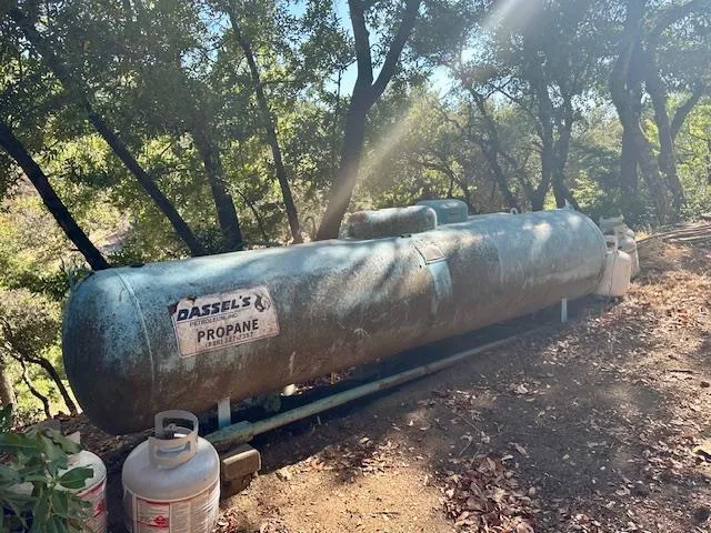 A very unique and overwhelmingly usable property. The 2 story brown house is in need of extensive repair and restoration. There is a majestic view from this house and the porch/yard outside. Solar. The Garage has some interior improvements but the condition is old and dirty but with a thorough cleaning it could be brought back to life. Repairs and upgrades are needed. Massive amount of propane storage and propane refill/delivery in place. The improvements are on record with the tax assessor and there are no violations on the property. There are 2 GIGANTIC flat pads along the main Summit Road with 2 separate driveways (one cement and one dirt). They are large enough for multiple large barns, animals grazing and corals, spacious recreational fields, many campsites, etc. Water leads to them from an underground water tank along the main road. There is a cement water tank currently used as a gold fish pond. There is a very recent survey. Madrones and Fig trees Zoned SU (Special Use)