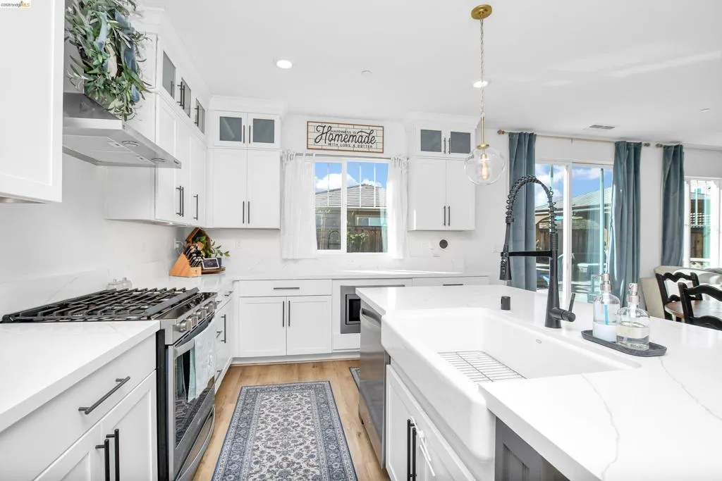 Welcome home to this beautifully upgraded two-story residence, perfectly situated on a desirable corner lot. With 2,006 square feet of thoughtfully designed living space, this home offers 3 bedrooms, 2.5 bathrooms, and a layout that feels both open and comfortable. The spacious living area, complete with a cozy fireplace, flows naturally into the heart of the home—a stylish kitchen featuring stainless steel appliances, a gas range, a large island with a farmhouse sink, and plenty of space to gather, cook, and connect. A convenient powder room completes the main level. Upstairs, you’ll find all three bedrooms along with a versatile loft, ideal for a home office, movie nights, or a quiet reading space. The primary suite is a true retreat, offering a generously sized walk-in closet and a peaceful place to unwind at the end of the day. Step outside to a backyard designed for both relaxation and entertaining, with a lush lawn, raised planter boxes, a charming pergola, and an outdoor bar that stays with the home—perfect for enjoying warm evenings with family and friends. With owned solar panels for added efficiency and a location close to shopping, dining, and Highway 4, this home offers both comfort and convenience for everyday living and easy Bay Area commuting.