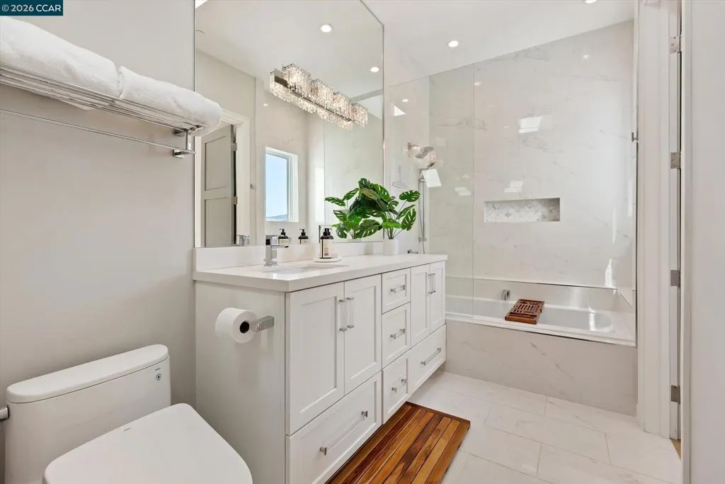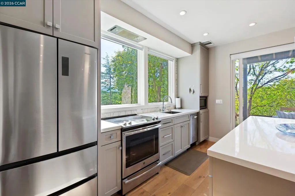 This may be the needle in the haystack you've been searching for! This stunning modern home, built just 10 years ago, offers thoughtful design, exceptional flexibility, and an unbeatable location near downtown. The 3,449 sq. ft. main residence features 4 bedrooms and 4 baths, plus a 438 sq. ft. guest house with full bath and kitchenette. The heart of the home is a beautiful chef’s kitchen with an oversized island, abundant cabinetry, elegant porcelain countertops, and premium Thermador appliances. Designed by the architect/owner with multi-generational living in mind, the level-in lower level includes its own kitchen, bedroom, bath, laundry, and private patio. It can function as part of the main home or as a separate living space. Sunlight fills the home, with lovely sunset views enjoyed from the living and dining areas. Outdoor living is easy with low-maintenance grounds, a covered patio wired for TV and includes a cozy fireplace. The hot tub is perfectly positioned to enjoy the views. Located just blocks from Whole Foods and vibrant downtown Walnut Creek, with world-class shopping, dining, and entertainment nearby. Close to Las Lomas High School and within the highly regarded Walnut Creek and Acalanes school districts.