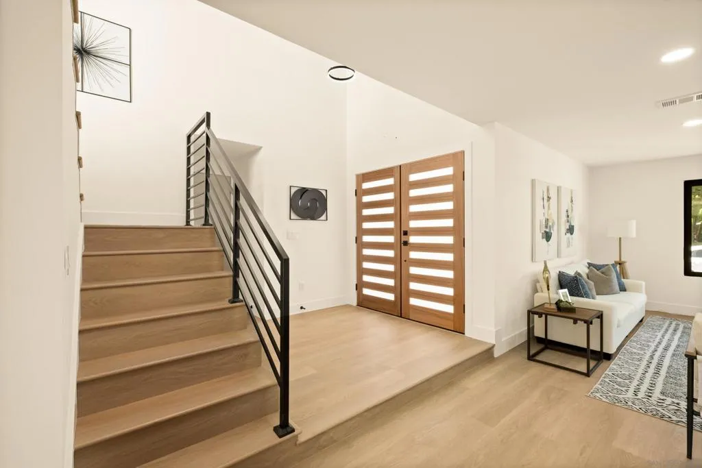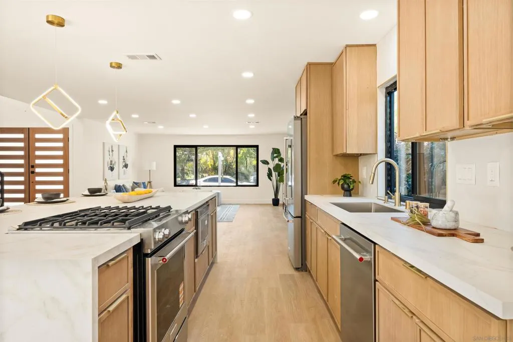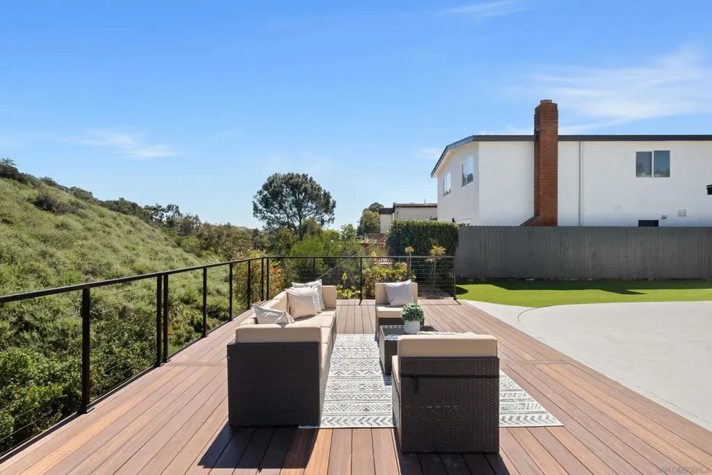 Tucked away on a secluded street in Bay Park, this beautifully remodeled home offers privacy while remaining just minutes from the best of San Diego. The property backs directly to a peaceful valley, creating a serene natural backdrop rarely found this close to the city. A newly constructed oversized deck extends the backyard living space out toward the valley, providing the perfect setting to relax, entertain, and enjoy the surrounding views. Inside, the home has been completely remodeled and is truly turn-key, featuring a modern kitchen with brand-new appliances, new cabinetry, new countertops, and a large center island designed for both functionality and gathering. The interior is filled with natural light thanks to large black-framed windows throughout, giving the home a clean, contemporary feel. The thoughtfully designed layout places all bedrooms upstairs, creating separation between living and private spaces. Additional highlights include a large garage and an extra-wide driveway offering ample parking. With its quiet location, valley views, and high-quality renovation, this Bay Park home delivers modern living in one of San Diego’s most convenient coastal-adjacent neighborhoods.