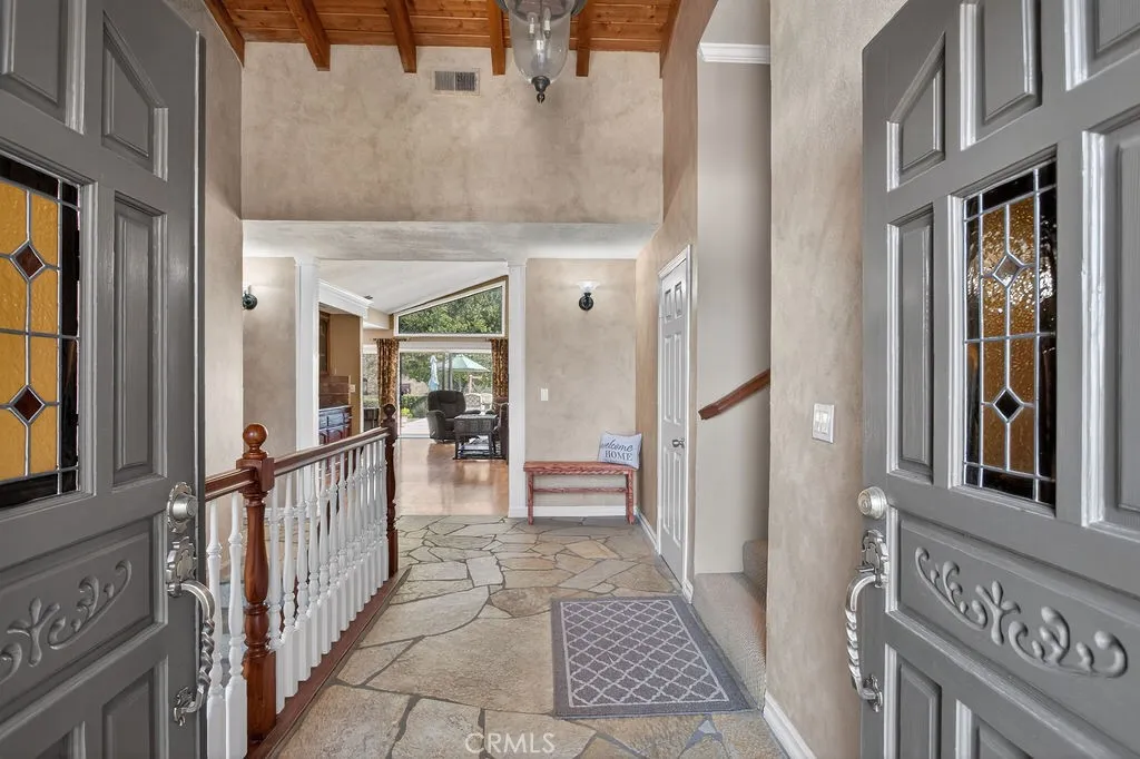 Discover the pinnacle of Southern California living at 20765 Avenida Castilla, a private sanctuary nestled within the prestigious La Cresta equestrian community on Murrieta’s scenic Santa Rosa Plateau.This beautifully updated 3-level home offers 4 bedrooms, 2.5 bathrooms, and 3,207 square feet of elegant living space, with primary living on the main level, on a fully usable 5-acre parcel. Built in 1984 and thoughtfully refreshed, the property features a warm stucco exterior with natural stone accents, a classic tile roof, and a long, winding private driveway through vibrant, meticulously landscaped grounds. A charming wrap-around porch adds to the inviting appeal.Inside, natural light pours through oversized windows into an open-concept design. The grand living room features a dramatic stacked-stone fireplace, ideal for relaxing or entertaining. The spacious family room showcases rustic flagstone flooring and a ceiling fan. The gourmet kitchen impresses with rich dark wood cabinetry, granite countertops, stone backsplash, breakfast bar, and windows framing beautiful garden and hill views.The primary suite includes a spa-like bathroom with a frameless glass walk-in shower and dual vanities. Rresort-style living awaits with expansive concrete patios, multiple seating areas under large umbrellas, a pristine artificial turf lawn, and lush gardens filled with vibrant flowers, bougainvillea, cacti, and mature trees. Multiple decks and the wrap-around porch provide stunning panoramic mountain and valley views.Equestrian lovers will appreciate the established facilities, including a center-aisle barn, fenced paddocks, pastures, a riding arena, and room for expansion, plus direct access to La Cresta’s scenic trails.Additional features include a 3-car attached garage, central HVAC, and full La Cresta HOA benefits.Just minutes from top-rated Murrieta schools and shopping, the property is only a 15-minute drive to Temecula Valley Wine Country. Enjoy over 40 acclaimed wineries such as world-renowned Europa Winery, Wilson Creek, South Coast Winery, and Ponte Family Vineyard for tasting rooms, events, and fine dining.This exceptional estate perfectly combines sophisticated interiors, spectacular outdoor amenities, strong equestrian potential, and easy access to wine country in one of the region’s most desirable communities.