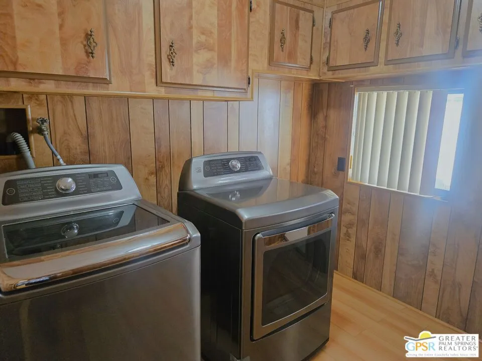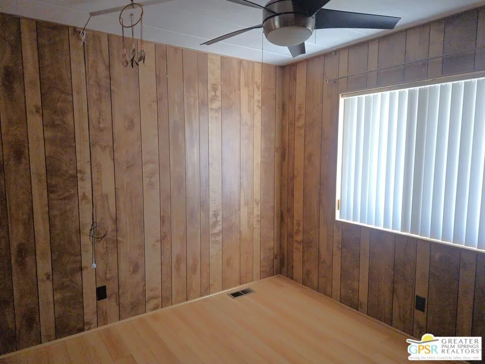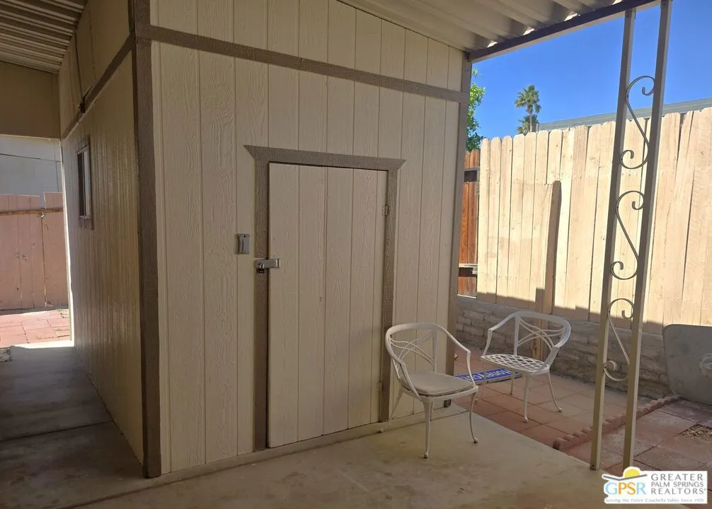 Boasting panoramic views to the East and perfectly set in a gorgeous rural setting within the lively golf and active 55+ community of Desert Crest Country Club, this exceptional Two Bedroom & Two Bath, 1440 SF manufactured home that was built in 1981 offers a unique blend of comfort and convenience tailored for those seeking an active and vibrant lifestyle. Located in the Southeast corner of Desert Crest Country Club yet just around the corner from the golf facilities that are free to the Owners and just down the way to the huge Clubhouse with natural mineral spring water Pool & several Spas, this home enjoys the perks of a lively existence, surrounded by the scenic beauty of the desert landscape in the Western Coachella Valley. This well-maintained home, built in 1981, gives some very private space on the covered Southside Patio that is your entry to the home. You come into an interior that includes updated laminate flooring throughout. The massive Living & Dining Room combo stretches the width of the front of the home with a built-in Hutch, while a separate Family Room with more built-ins attaches to both the Living & Dining Room with entry to the large Kitchen. Of special note is the massive amount of butcher-block look counterspace and cabinetry for toms of storage, while the appliances include a Viking double-wall Oven, gas Cooktop, Dishwasher, and modern Banquet Refrigerator. An extra Bonus is the oversized Laundry Room that has easy access to the Carport. Matching Washer and Dryer amongst more storage completes the interior. Two Bedrooms and two full Baths offer both comfort and functionality, catering to the needs of daily living within the spacious interior. The Primary Bedroom stands as a serene haven, complete with the enormous ensuite Bath that has dual sinks, makeup mirror seating space, and deep soaking Tub with a separate Shower. The second Bath is full sized too. Newer ceiling fans are installed throughout. A large attached Shed tucked away to the rear of the 2 Vehicle Carport handles your storage needs. The covered South patio makes an inviting space designed for relaxation and entertainment while the Rear Yard is an oasis of calm and serenity. It's the ideal spot to revel in the beauty of the desert evenings, fostering moments of tranquility and social gatherings. The low-maintenance landscaping, fenced for privacy, ensures that upkeep remains effortless, allowing residents to focus on the joys of community living. The Carport is decidedly spacious enough for two vehicles and a Golf Cart. The Desert Crest Country Club community boasts a 9-hole golf course, inviting residents to enjoy leisurely rounds amid the picturesque setting of pond and mature trees that boast views of Mounts San Jacinto and San Gorgonio and the iconic windmills of the Banning Pass. This oasis extends beyond the golf course, offering a multitude of amenities enhancing your daily life. Owners enjoy a multi-faceted Clubhouse that features a healthy mineral water Pool and Spas, providing a serene escape and a hub for plenty of social connections. Indoor Shuffleboard and other activities are a welcome diversion here at the Clubhouse, with many interior facilities to keep you moving. The onsite cafe caters to culinary cravings, the dog groomers attend to furry companions, and the real estate office ensures all needs are met with ease. These conveniences foster not just a residence but a sense of belonging within a home and community bound by shared experiences and vibrant camaraderie. This home represents a harmonious blend of comfort, style, and functionality, creating a delightfully private haven within the heart of Desert Crest Country Club. Whether indulging in a round of golf, luxuriating in the mineral water pool, or simply savoring the serenity of the surroundings from your very private rear deck, this property offers a unique and fulfilling 55+ living experience, where every moment resonates with the essence of a life well-lived.