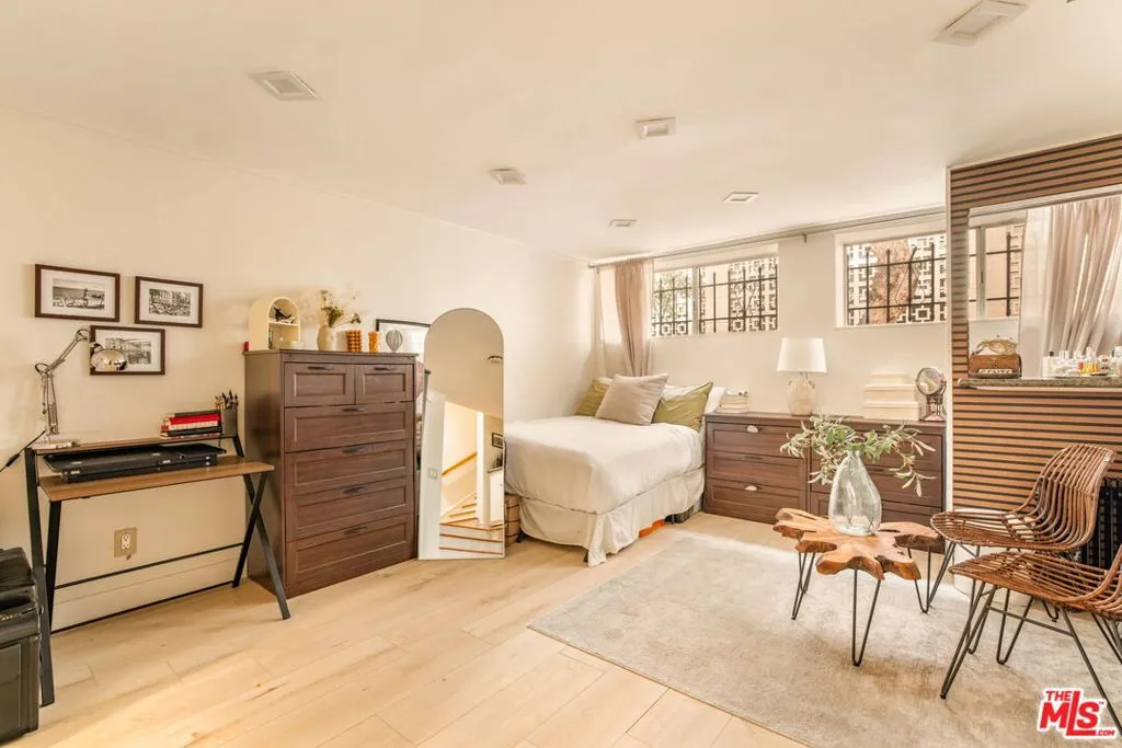 Tucked away on one of the most desirable tree-lined streets in Beverly Hills, just north of Burton, this beautifully updated two-story townhouse-style residence offers an exceptional blend of space, style, and location. Situated within an intimate six-unit building in one of the city's most sought-after residential pockets, the home delivers the privacy and comfort of townhouse living while being moments from the world-class lifestyle that makes Beverly Hills so desirable. This light-filled residence features an ideal two-level floor plan with generous living spaces and thoughtful upgrades throughout. The upper level welcomes you with a spacious living room and formal dining area, perfect for both relaxed living and entertaining. Large windows fill the space with beautiful natural light, while the private balcony offers a refreshing breeze and a peaceful setting overlooking the charming neighborhood.The well-appointed kitchen features granite countertops, stainless steel appliances, and abundant cabinetry, complemented by a convenient laundry room with a walk-in pantry. Two bedrooms are located on the upper level, including a generously sized primary suite designed for comfort and tranquility.The lower level offers incredible versatility, featuring an additional bedroom and bathroom along with an expansive family room or den. While the home is officially configured as a three-bedroom residence, the spacious bonus room has been thoughtfully converted into a separate bedroom, allowing the property to function comfortably as a four-bedroom home, ideal for guests, a home office, or flexible living arrangements. Additional highlights include gleaming hardwood floors, newly refreshed interior paint, elegant crown molding, recessed lighting, stylish light fixtures, mirrored wardrobes, and three beautifully remodeled bathrooms.Located in a quiet, well-maintained building with low HOA dues, the home also includes secure garage parking with two-car tandem spaces. Residents benefit from access to the highly acclaimed Beverly Hills Unified School District, adding further value to this exceptional offering. Moments from the renowned shopping, dining, and entertainment of Rodeo Drive and the vibrant lifestyle of Beverly Drive, this residence presents a rare opportunity to enjoy sophisticated living in the heart of Beverly Hills.