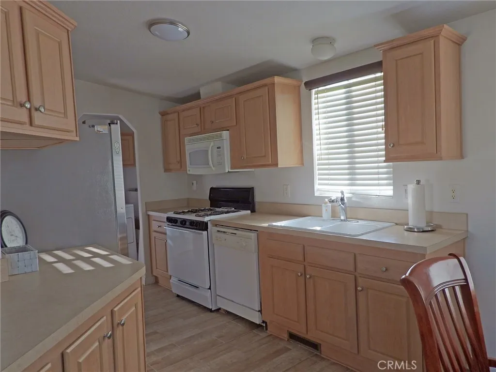 This well cared for home features many great attributes, starting with beautiful flooring and a fireplace in the living room. It includes central heating and air conditioning, landline phone jacks, and convenient side-by-side parking. The property also offers two large fenced-in yards surrounded by durable vinyl fencing and even includes a wheelchair lift for added accessibility. Inside, the home has vaulted ceilings and dual-pane windows that provide plenty of natural light and energy efficiency. The kitchen offers generous counter space and ample cabinetry, making it perfect for cooking and storage. The kitchen and bathrooms feature attractive wood-look tile flooring, while the rest of the home has stylish vinyl wood-look vinyl floors. The location is ideal, close to a variety of shopping and dining options. A senior center is located directly across the street, offering many activities and community events. This is a 55+ park and allows for additional people that are at least 21 years old. The new space rent fee will be approximately $980 a month.