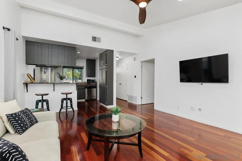 Instant equity!! Just appraised at $370k!! Situated amongst the scenic Pala Mesa Golf Course in Fallbrook, this private one-bedroom, one-bathroom upper level end unit condo offers a perfect blend of comfort and convenience. This low maintenance retreat is great for those looking to downsize, first time homebuyers and avid golfers. Inside, you’ll find modern finishes, including stainless steel appliances, granite countertops, and elegant wood flooring. The dual closets with built-in storage maximizes space, while the oversized balcony provides breathtaking views of the lush fairways and nearby mountains. A detached, oversized (30ft!) one-car garage offers ample room for two small cars or a full-size car plus a golf cart, motorcycles, or extra storage. Neighborhood amenities include two pools, two spas, grilling areas and rolling greenbelts. Close proximity to both the 15 freeway and highway 76 makes commuting or a trip to the beach or Temecula Wine country a breeze. Or stay local and enjoy the boutique wineries, dining and shopping just minutes away! Come experience the best of golf course living in this exceptional home. Upgrades include real wood flooring, brand new stainless steel refrigerator, full size stacked washer and dryer, reverse osmosis system, instant hot water and a jacuzzi tub.