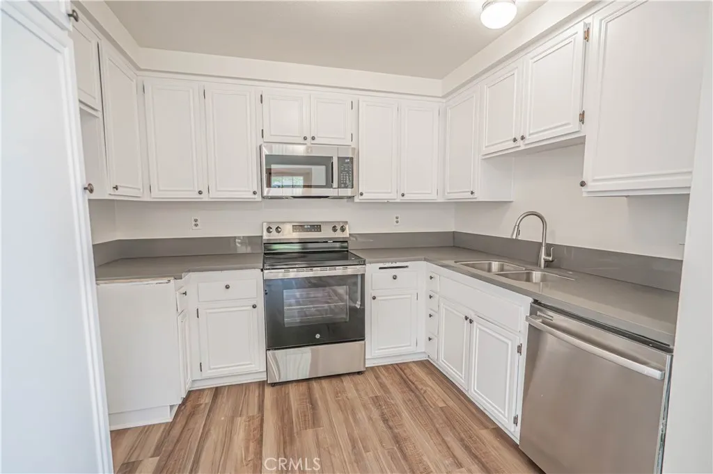 Welcome to this beautifully updated 3 bedroom, 1.5 bath end-unit condo in the desirable Valencia Fairways community of Valencia. With fresh upgrades, a spacious layout, and a prime location near golf, schools, and commuter routes, this home offers comfort and convenience in one of Santa Clarita’s most sought-after neighborhoods. Step inside to a bright, open main living area featuring fresh interior paint and brand-new flooring throughout, creating a clean and modern feel from the moment you enter. The updated kitchen showcases quartz countertops, new stainless steel appliances, and ample cabinetry, making it both stylish and functional for everyday living and entertaining. The primary bedroom features its own private, oversized bathroom vanity as well as a walk-in closet, and all bathrooms have had beautiful brand new quartz countertops installed as well. As an end unit, the home enjoys additional privacy and plenty of natural light. Sliding doors open to a private patio, perfect for morning coffee, outdoor dining, or relaxing evenings, and there is plenty of space and sunlight for growing a garden! Residents of Valencia Fairways enjoy access to multiple association pools and community amenities, all while living adjacent to the scenic fairways of Vista Valencia Golf Course. The location is ideal for both lifestyle and convenience - Just minutes from California Institute of the Arts, College of the Canyons, top-rated local schools, shopping, dining, and easy freeway access for commuters. This community is also FHA & VA approved, and fully warrantable for conventional financing. This is a rare chance to own an updated home in a prime Valencia location at an affordable price, close to everything while offering peaceful community living.