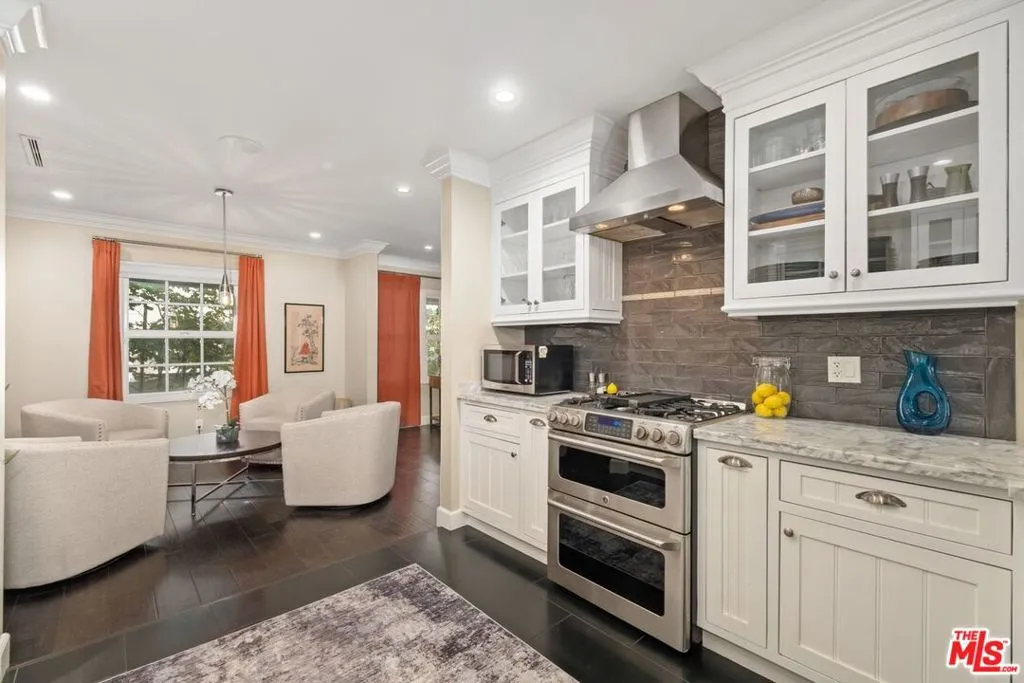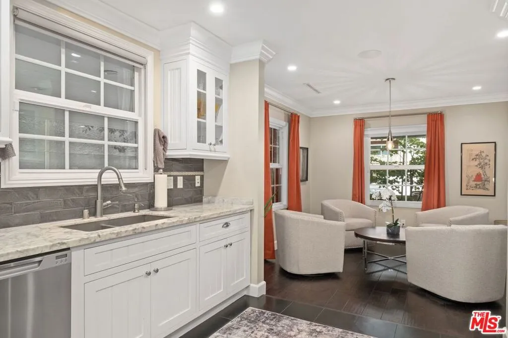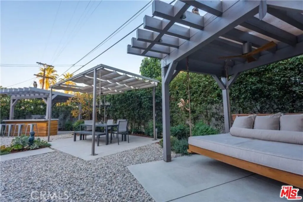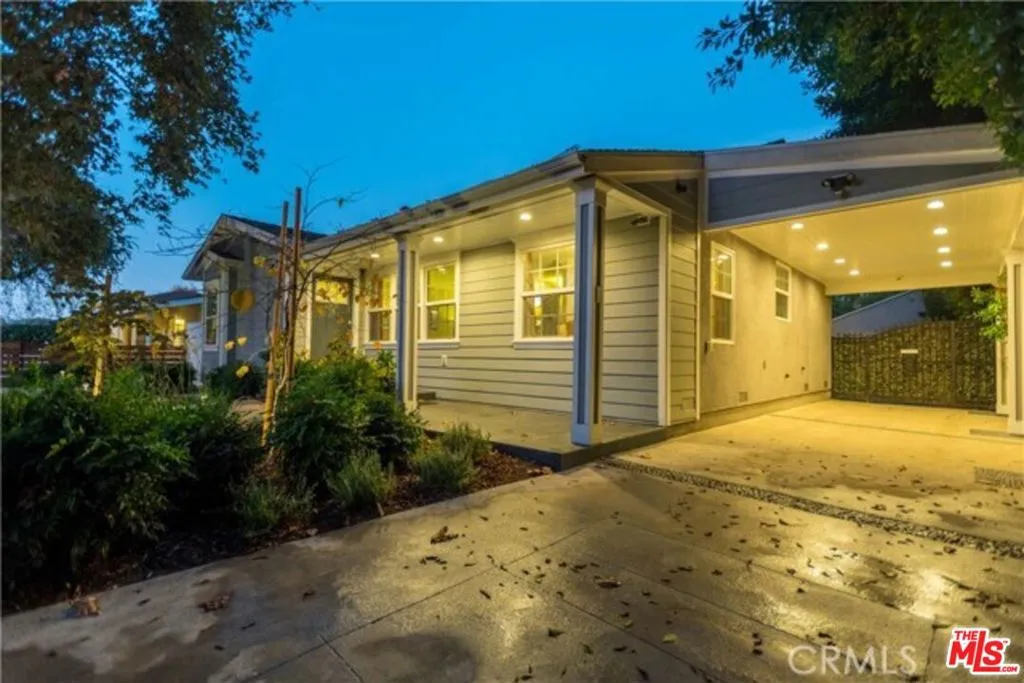 Sophistication and luxury await you in this spectacular modern home! You can look near and far, and you won't find a home with the grace, style, and warmth that this beauty offers! As you enter the home, you are greeted in style as you walk into the intimate living room, complete with a fireplace, offering the perfect spot for drinks before dinner with friends or relaxing with a good book! Preparing meals in the gourmet kitchen, which is adorned with Carrera marble counter tops, stainless steel appliances, a cook's oven, and beautiful cabinets, is enjoyable and relaxing! The kitchen is equipped with dual sinks, dual dishwashers, and two ovens. The breakfast bar in the kitchen opens to the dining area and family room, which allows for ease of mingling with guests while cooking. The large primary bedroom has a built-in desk, which makes for a lovely workspace, as well as access to the patio. The spa-like primary bathroom is adorned with Carrera marble and offers a large bathtub with jets so you can relax and unwind! The second bedroom is an en suite, allowing privacy for guests. The third bedroom is light and bright! Enjoy the ease of the indoor/outdoor flow, through the sliding glass doors to the patio and the Shangri-La atmosphere of the architect designed backyard, where you will find the outdoor kitchen with a BBQ, sink, and refrigerator, dining pergola, swing bed, and dual waterfalls - a true sanctuary in which to relax and recharge! Some notable features this lovely home has to offer: crown molding, engineered wood flooring, dual pane windows, Rachio auto sensor drip watering system for the entire landscaping, built-in sound speakers in common areas of the house, and a 2-car detached garage, as well, as a car port.