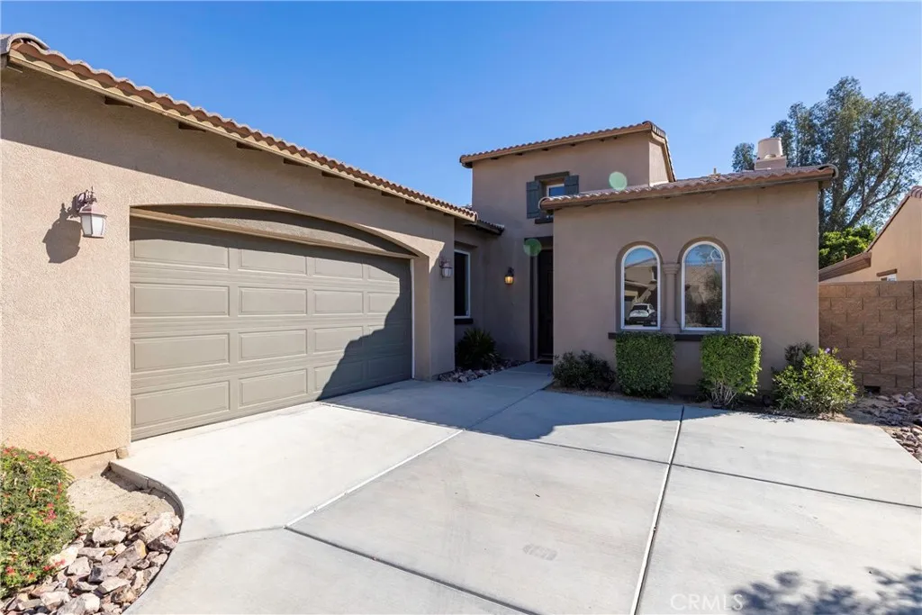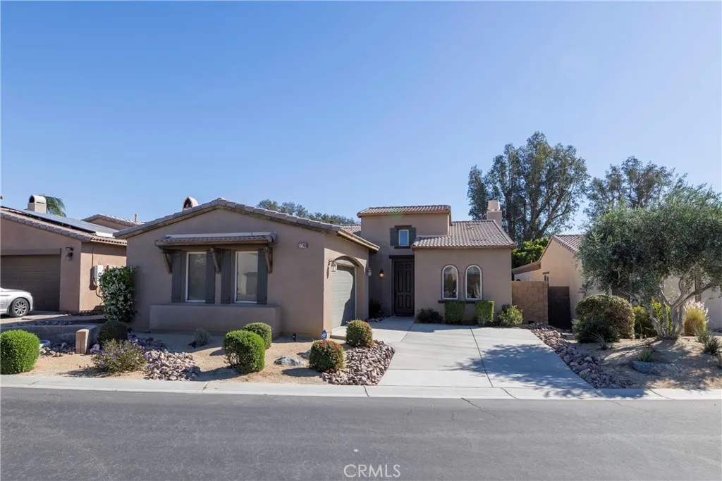 Price just reduced! Beautifully maintained home on a cul-de-sac in the popular Palm Desert Country Club Community. This home was built in 2007 and is perfectly set up as a furnished desert retreat with close access to the Country Club and a private pool/spa/picnic area. Great floorplan with two bedrooms in front, the primary suite in the back, and a spacious open kitchen/living area concept at the center of the home. The kitchen has a large island with granite counters along with built in custom cabinets. Crown Molding and laminate floors provide for a wonderful decor throughout the house. The outside patio is a great area for entertaining with a natural gas built in BBQ, a natural gas fire pit and a beautiful water wall fountain that extends from the BBQ. There currently is a putting green behind the property but evidently that area will be incorporated into the "Corterra Villas" development as a future sports park. Yard lighting is on a timer and there is an automatic irrigation (drip) system. Inside laundry room with direct access to garage and in the garage there is a Tesla charging station.