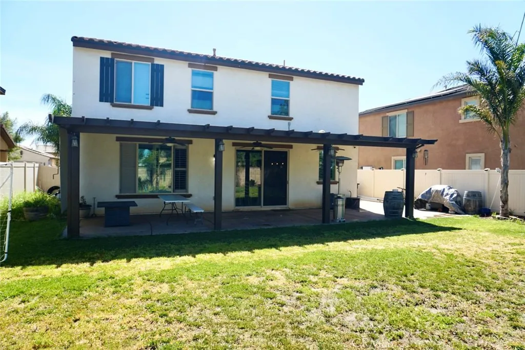 Spacious 5-bedroom, 3 full-bath home built in 2018, offering a functional layout with generous living space. Features an open floor plan, well-sized bedrooms, and a convenient mud room. The garage includes epoxy floors and an EV charging outlet. Enjoy a large backyard with an awning and two lemon trees, providing plenty of space to relax or entertain. Washer, dryer, refrigerator, dishwasher, and microwave are included. The HOA offers biking trails, a pool, jacuzzi, and BBQ area. Great opportunity to own a newer home in Perris and low HOA.