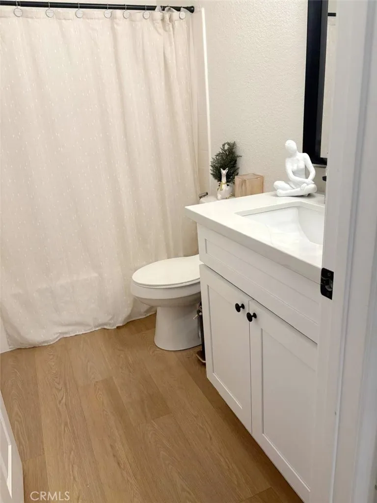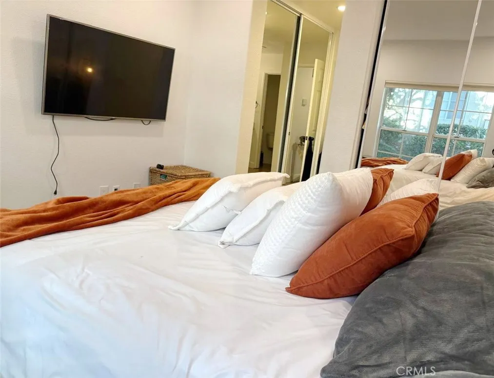 Modern ground-level 2 bedroom, 2 bathroom end unit located in the highly desirable Tijeras Creek Village of Rancho Santa Margarita. New stainless steel kitchen appliances, Quartz counters, remodeled bathrooms, and custom black hardware throughout are just a few of the amazing upgrades showcased in the home. Front entry leads you to arched walkways, designer flooring, crown molding, and custom paint throughout. Sun-soaked, the living room offers great space for entertaining and a patio door opening to the expansive wraparound patio. With ample room to add outdoor furniture and a BBQ, you can create an awesome exterior living space. Warm up next to the newly tiled fireplace or turn on the central HVAC during the summer. The open concept kitchen oversees the adjoining dining area and living room, complete with a coffee bar on the peninsula brightened by pendant lighting. Appliances include a 5-burner gas range/oven, microwave, refrigerator, and dishwasher. The split bedroom floorplan adds great privacy. Roomy with 3 closets, the master suite features a secondary patio door and gorgeous en suite. A walk-in shower with a step, custom frameless glass shower doors, dual vanity, and toilet privacy door are presented in the en suite. The guest bedroom, full bathroom, and stackable washer/dryer closet are nestled in the hall. An additional private balcony and direct access to the hallway bath are boasted in the ample sized guest bedroom. Newly added recessed lighting, dual pane windows, and baseboards are also included in the home. Gorgeously maintained, the HOA grounds consists of lush greenery/trees with amenities such as 2 sparkling pools, 2 spas, BBQ grills, a tot-lot, gym, and paid trash/sewer. This unit also includes 1 carport parking space, a 1 car garage. Located near Tijeras Creek Golf Club, Arroyo Vista Park, Rancho Santa Margarita Skate Park, and lots of shopping and entertainment centers! Within walking distance of Arroyo Vista Elementary School (K-8).