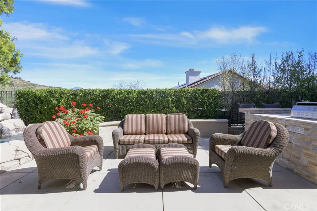 The curb appeal is undeniable as you arrive at this stunning home located in the highly sought-after gated community of Stonecliffe. Surrounded by gorgeous & serene views, close to amazing hiking and biking trails, near highly rated schools, and a low tax rate with no Mello-Roos. Enter through custom double doors into soaring ceilings with natural light-filled rooms, picturesque windows, and beautiful real hardwood floors. This spacious 2,670 sq ft floor plan offers 4 bedrooms (with the 4th currently configured as an oversized loft), 2.5 baths & a 3-car garage with cabinets & additional shelving. The heart of the home is the expansive family room, highlighted by views, a beautiful electric remote-controlled fireplace & custom built-in cabinetry, opening seamlessly to the large kitchen-perfect for entertaining & everyday living. The kitchen features a large island, a double oven, abundant cabinetry & a convenient butler's pantry that provides additional storage & serving space. Thoughtful upgrades throughout the home include plantation shutters, ceiling fans, a new water heater, magnetic door stoppers, a linen closet, and additional storage utilized beneath the staircase. The entire home has been repiped, features new plumbing fixtures throughout, and includes 2 new AC systems for comfort & peace of mind. Upstairs, the spacious primary suite is a true retreat, featuring French doors that open onto the balcony and offer beautiful views. The primary suite also includes 2 walk-in closets and plenty of space to relax & unwind. Secondary bedrooms are generously sized, & the large loft offers flexibility as a 4th bedroom, home office, or bonus room. Step outside to the ideal-sized backyard designed for both relaxation & entertaining. Enjoy easy maintenance landscaping, vinyl fencing & a beautiful spool with a tranquil waterfall. The outdoor space also features a built-in BBQ with bar seating, ideal for enjoying Southern California living while watching a big screen TV. Additional highlights include PPA solar with no monthly lease payment, helping provide energy efficiency & huge cost savings. This pristine home offers the perfect blend of elegance, comfort, and functionality in one of the area's most desirable gated communities.