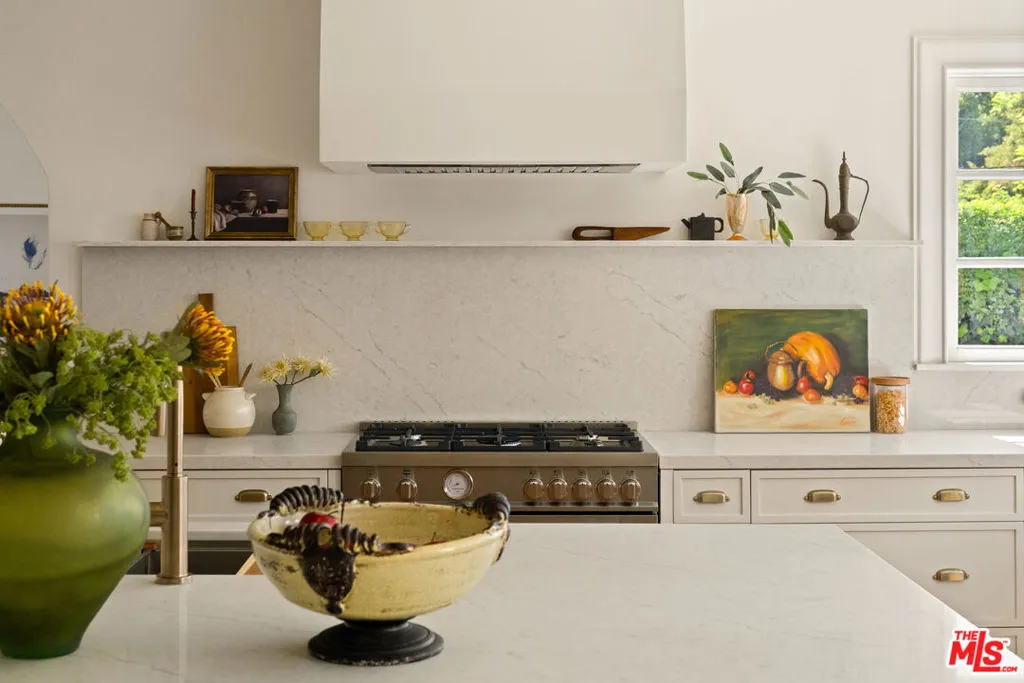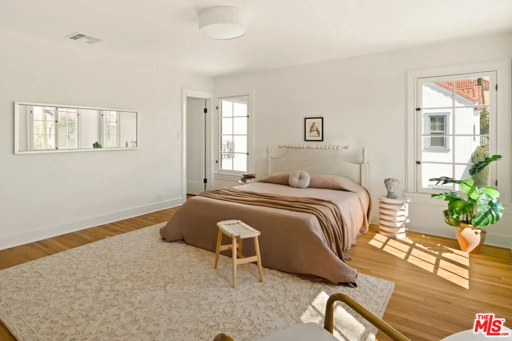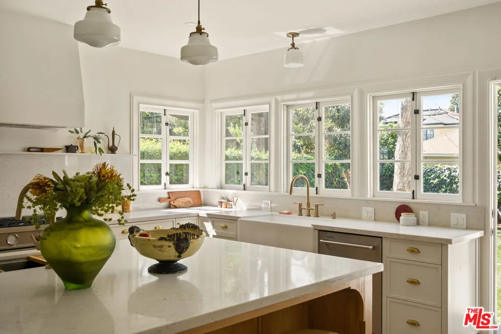 Step into timeless elegance with this stunning 1923 Spanish architectural gem situated in the heart of Windsor Village HPOZ, adjacent to esteemed Hancock Park. This home features distinguished period details, including soaring ceilings, exquisite moldings, arched casement windows, and an original Batchelder tile fireplace, collectively establishing an atmosphere of enduring sophistication. The well-appointed cook's kitchen features an oversized white oak island, Bertazzoni stove, abundant storage, dual sinks, a walk-in pantry, and custom cabinetry, all complemented by serene views of the backyard. A generously proportioned formal dining room, bathed with natural light, provides an exceptional setting for distinguished gatherings and entertaining. A ground-floor office overlooks a charming courtyard with a soothing fountain. The upper level accommodates three spacious bedrooms, including a substantial primary suite appointed with a sun-filled bath, walk-in shower, double vanity, and deep soaking tub. An enchanting bridge leads to a versatile recreation room featuring abundant natural light, a three-quarter bath, and a kitchenette ideally suited for extended family accommodations, guest quarters, or a dedicated creative workspace. The peaceful backyard features established mature trees and manicured lawn areas offering a private outdoor retreat. A secured gated entry provides access to a two-car garage with plentiful storage. Around the corner from Harold Henry Park and walking distance to Larchmont Village shops & restaurants. This one has everything that you are looking for!