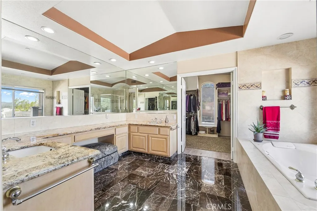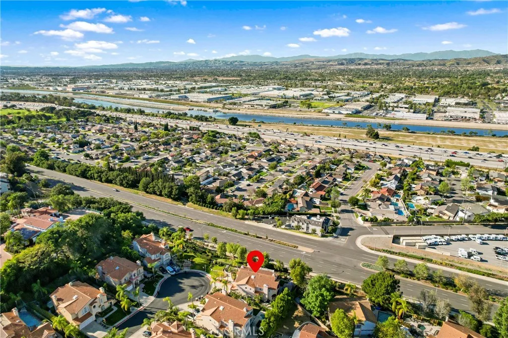 Perched atop one of Anaheim Hills’ most prestigious gated enclaves, this amazing residence sits on a sprawling corner lot at the end of a quiet cul-de-sac, offering privacy and sweeping panoramic views. Soaring ceilings and walls of windows bathe the interiors in natural light, while double doors throughout create seamless connections to the meticulously landscaped grounds, crafting a perfect canvas for entertaining. The formal sitting area, anchored by a warming fireplace, flows effortlessly into the formal dining room, which opens to the backyard—ideal for sophisticated indoor-outdoor entertaining. For more casual gatherings, a second dining area opens to the spacious kitchen and expansive family room warmed by an additional fireplace, creating an inviting space for everyday living. The guest powder room on the main level ensures convenience for visitors. Upstairs, four generous bedroom suites, each with its own luxurious en-suite bathroom, provide comfort and privacy for family and guests. The primary suite is a serene retreat, complete with its own fireplace, a sprawling walk-in closet, and a private patio deck that frames stunning sunset vistas—perfect for morning coffee or evening relaxation. Outside, sculptural rock formations and cascading waterfalls create a tranquil, resort-like atmosphere, brought to life after dark by expertly designed landscape lighting. Multiple outdoor entertaining spaces—including fire pits, a built-in barbecue, and a shaded pergola—invite alfresco dining and gatherings against the backdrop of rolling hillside views. A three-car garage provides ample storage, complemented by a spacious driveway for multiple vehicles. Central heat and air throughout ensure year-round comfort. Ideally located near top-rated schools, scenic parks, shopping, and convenient freeway access, this home perfectly blends tranquility, luxury, and connectivity, offering a rare opportunity for resort-inspired living in Anaheim Hills.