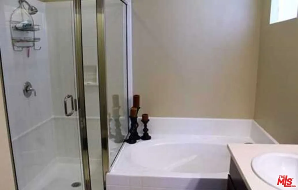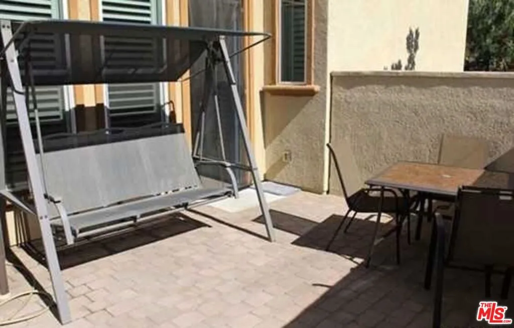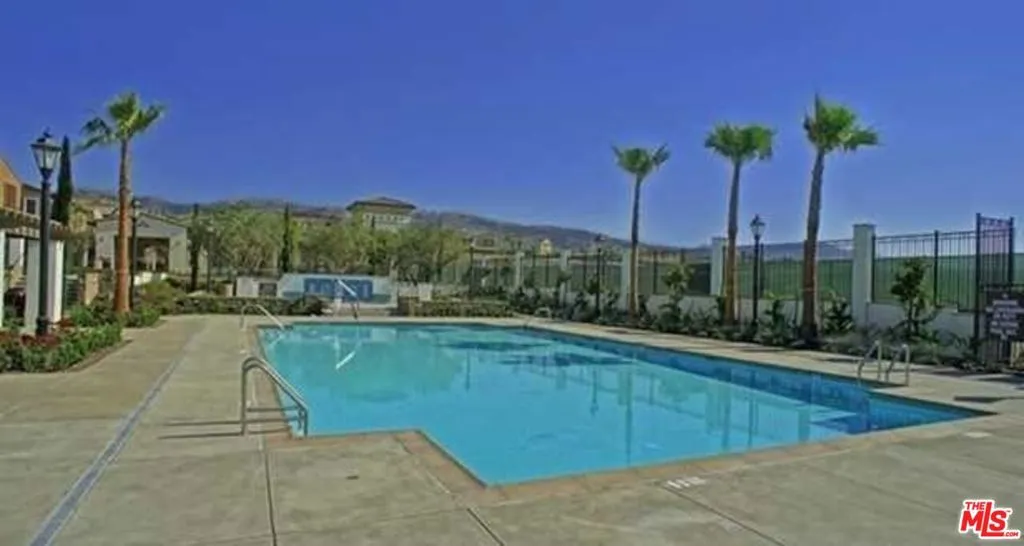 Beautiful two-level townhome located in the highly sought-after, guard-gated Seville at Aldea community in Porter Ranch. Built in 2013, this well-appointed home offers 4 bedrooms and 3 bathrooms, including a convenient first-floor bedroom and bath perfect for guests or a home office. Interior highlights include a designer entry door, plantation shutters throughout, and an oversized upgraded patio ideal for outdoor entertaining. The gourmet kitchen features granite countertops, a full backsplash, and stainless steel GE Energy Star appliances, and opens to the spacious living and dining areas. Upstairs, you'll find three additional bedrooms, including a generous primary suite with dual sinks, Corian countertops, and a large mirrored walk-in closet. A full bathroom with dual sinks and a laundry room with a side-by-side washer and dryer complete the second level. Community amenities include a resort-style pool and spa, children's wading pool, outdoor kitchen with BBQs, covered lounge area, fireplace, and playground. Conveniently located near Porter Ranch Community School (K8) and Porter Ranch Town Center.