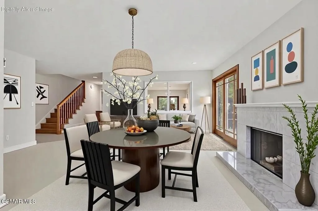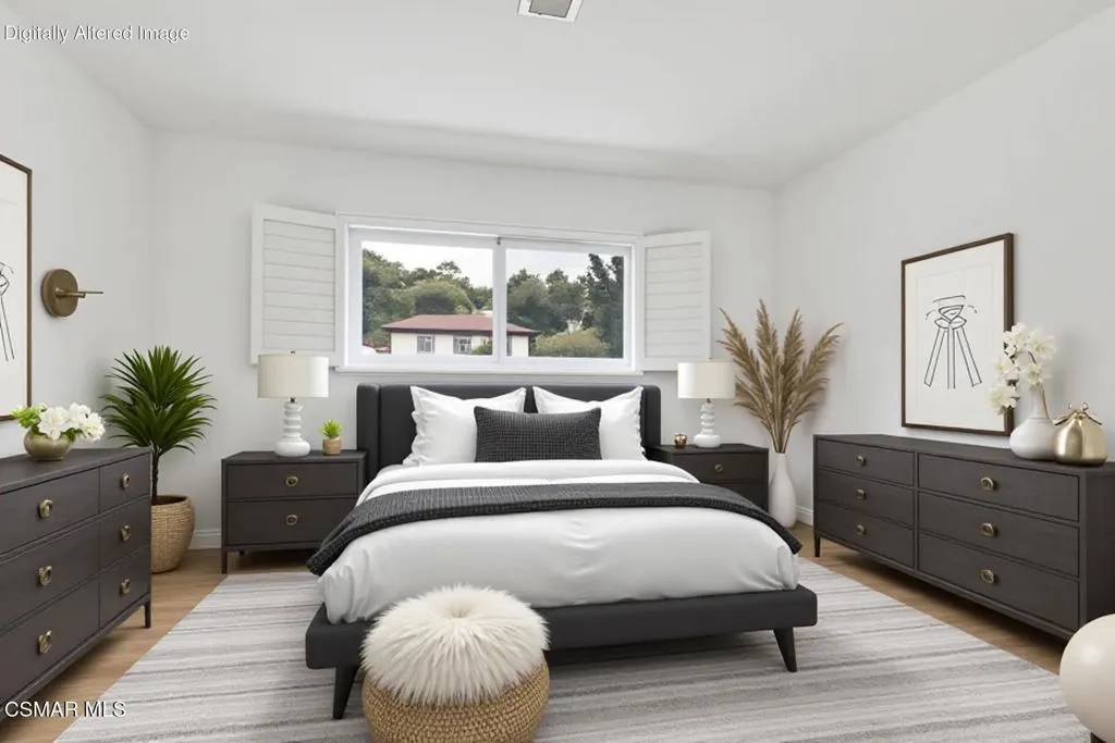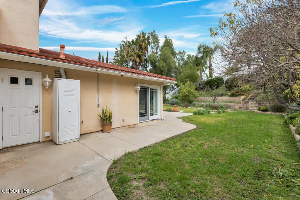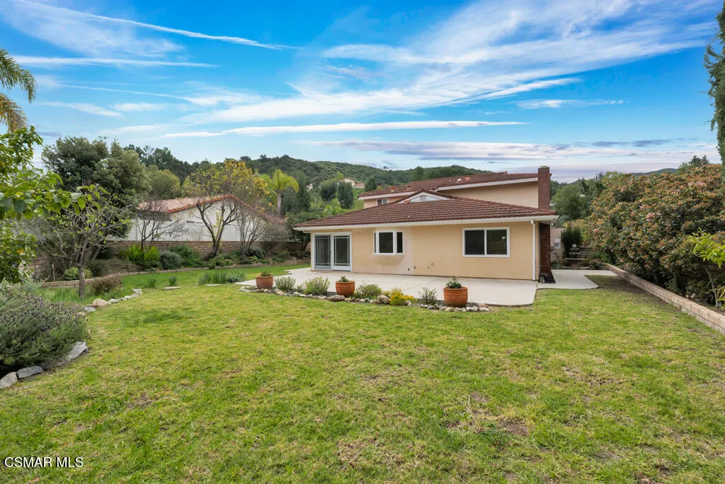 Bright & Updated Home with BEAUTIFULLY Remodeled Kitchen + Large Primary Suite on an Expansive Lot! Ideally positioned on a WIDE street in a QUIET location, this inviting 4-bedroom home combines thoughtful interior upgrades with a spacious backyard setting filled with mature greenery and endless outdoor potential.Attractive curb presence begins with vibrant front-yard landscaping and brick-surfaced walking steps leading to a gated front patio. The front patio itself is a peaceful retreat with its brick-ribboned walkway, manicured landscaping, and tranquil water feature. A beautiful front door with elegant glass accents and sidelight introduces the home's BRIGHT & open interior.Inside, the Living Room / Dining Room combination feels SUPER BRIGHT, illuminated by large windows and sliding glass doors which frame views of the lush backyard. The space is anchored by a handsome marble-surfaced gas fireplace and enhanced with BRAND-NEW carpet, creating an inviting setting for both everyday living and entertaining.The Kitchen has been BEAUTIFULLY REMODELED and showcases attractive granite countertops, CUSTOM natural-wood cabinetry with soft-close drawers and doors, elegant backsplashes, designer stainless-steel appliances, and a pantry with convenient pull-out shelving.The nearby Dining Area enjoys a flood of natural light via TWO sets of wood-cased sliding glass doors which open to the backyard.A Downstairs Bedroom rests conveniently near the entry and features wood flooring and dual-paned windows overlooking the front yard. Adjacent to this room, the Powder Room includes tile flooring and an upgraded pedestal sink and offers excellent potential to be converted into a FULL bathroom, which would easily transform the space into a downstairs guest suite.The Laundry Room sits in its own individual space and includes tile flooring, a large wash basin sink, built-in storage cabinetry, and direct access to the attached garage.Upstairs, two spacious secondary bedrooms feature BRAND-NEW carpet and wall-length closets. The Hall Bathroom includes upgraded flooring, a built-in vanity, and a separate water room with tub-shower.The Primary Bedroom is a TRUE SUITE, offering a dedicated sitting area, tall windows, and a windowed door that opens to a private balcony retreat. The completely REMODELED en-suite Primary Bathroom showcases upgraded wood-like flooring, a GORGEOUS quartz-topped dual-sink vanity, spacious WALK-IN closet, and a STUNNING fully redone shower with glass doors, shower bench, and striking herringbone tile flooring.The Backyard delivers an incredible outdoor setting, complete with sprawling grass lawns and PLENTY of room for a future pool, mature shade trees, tiered planter areas ready for a green thumb's imagination, and a wide right-side yard. Fruit trees include orange, lemon, fig, peach, pomegranate, strawberry, persimmon, and juju!Additional highlights include a 2-car garage with direct access, built-in cabinetry and overhead storage, FRESH interior paint, UPDATED lighting, UPDATED baseboards, and an upgraded TRANE XL80 furnace.Enjoy access to award-winning Conejo Valley schools and walkability to the STELLAR Lynn Oaks Park with basketball courts, playgrounds, and expansive green space. Nearby Wildwood Regional Park and Dos Vientos trails provide exceptional hiking, biking, and outdoor recreation, while quick access to the 101 freeway makes commuting, shopping, and dining super convenient!