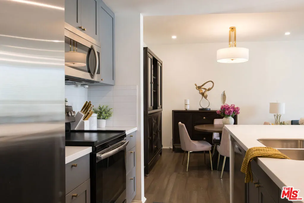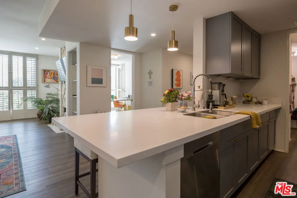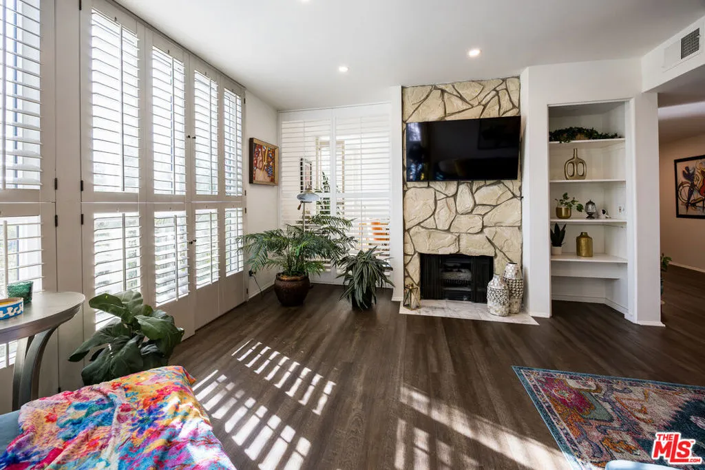 Welcome to this beautifully renovated and spacious residence set within a lush, resort-style community in the heart of Encino. Thoughtfully updated with new dual-pane windows, recessed lighting and new flooring throughout, the home offers an inviting atmosphere and a flexible floor plan that includes a versatile den or office easily convertible to a third bedroom. The bright and airy living room features a striking stone fireplace and opens to a large private balcony perfect for relaxing or entertaining. The open-concept kitchen is appointed with custom Shaker-style cabinetry, generous counter space, and a convenient breakfast bar for casual dining. The primary suite offers a walk-in closet and an elegant en-suite bathroom finished with marble and mosaic tile, high-end fixtures, and a separate soaking tub. A second bedroom, guest bathroom, in-unit laundry area, and additional storage complete this expansive floor plan. Located within a gated and private community surrounded by lush landscaping and mature trees, residents enjoy a resort-style setting with amenities that include a sparkling pool, indoor spa, sauna, recreation room, and beautifully maintained grounds. The unit includes two side-by-side parking spaces in a secure garage, a private storage locker, and ample guest parking. Ideally situated within walking distance to Ventura Boulevard, Trader Joe's, premier shopping, dining, and convenient freeway access. An excellent opportunity to enjoy comfortable living in a prime location or acquire a strong investment property.