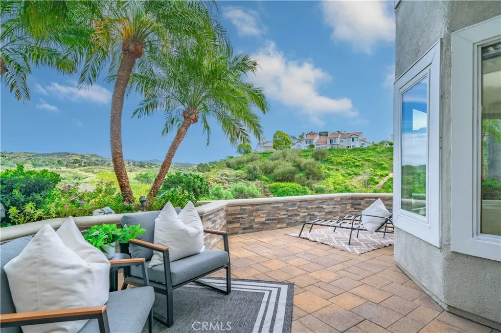 Tucked inside the exclusive gated community of Turtle Rock Pointe, this beautifully positioned residence offers one of the most coveted settings in the neighborhood. Surrounded by tree-lined streets and approximately 2,000 mature trees throughout the community, the home enjoys sweeping views of the 10th hole at Strawberry Farms Golf Club along with picturesque vistas of Shady Canyon and the Shady Canyon Reservoir. Featuring the largest floor plan in the community, this thoughtfully designed 3-bedroom home captures its remarkable surroundings from nearly every room. Soaring vaulted ceilings and expansive windows fill the interior with natural light while perfectly framing the home’s premier views. The oversized living room flows effortlessly into the dining area, where French doors open to the patio-creating an inviting setting for both everyday living and entertaining. The family room and kitchen come together in a warm, open great-room layout anchored by a gas fireplace and an entertainer’s kitchen. Just beyond, the breakfast nook sits beside a striking geometric wall of windows that bring in soft morning light and dreamy hillside views. A powder room and laundry room complete the main level. Upstairs, the vaulted ceilings continue into the spacious primary suite, which includes a private retreat area perfectly positioned to take in elevated views of the canyon and golf course. The primary bath features a renovated shower, dual-sink vanity, and a generous walk-in closet. Two additional bedrooms, a full hallway bath, and a wall of built-in hallway cabinetry complete the upper level. Outside, the patio is a peaceful extension of the home-offering open golf course and hillside views with multiple seating areas and a covered section ideal for relaxing or hosting. A rare three-car garage and three-car driveway provide exceptional parking and storage. Set within one of Irvine’s most desirable communities, residents of Turtle Rock Pointe enjoy beautifully maintained grounds, a community pool, and the privacy of a gated neighborhood just moments from scenic trails, golf, and the best of Irvine living.