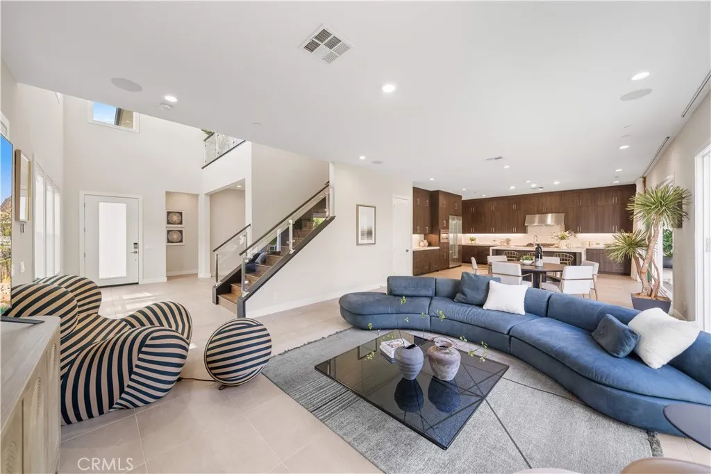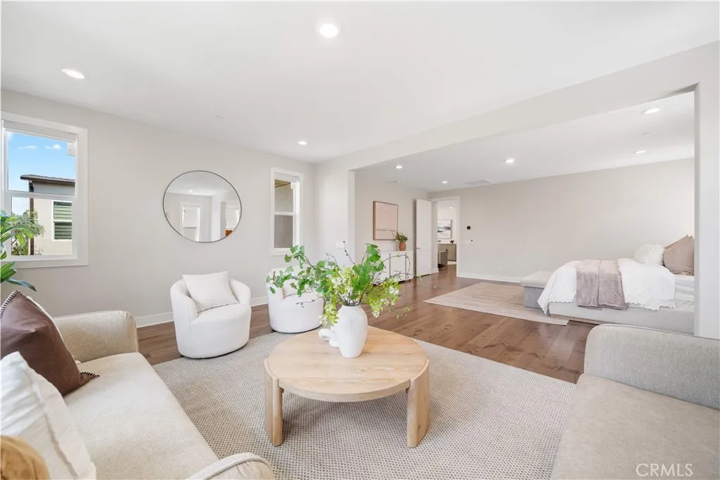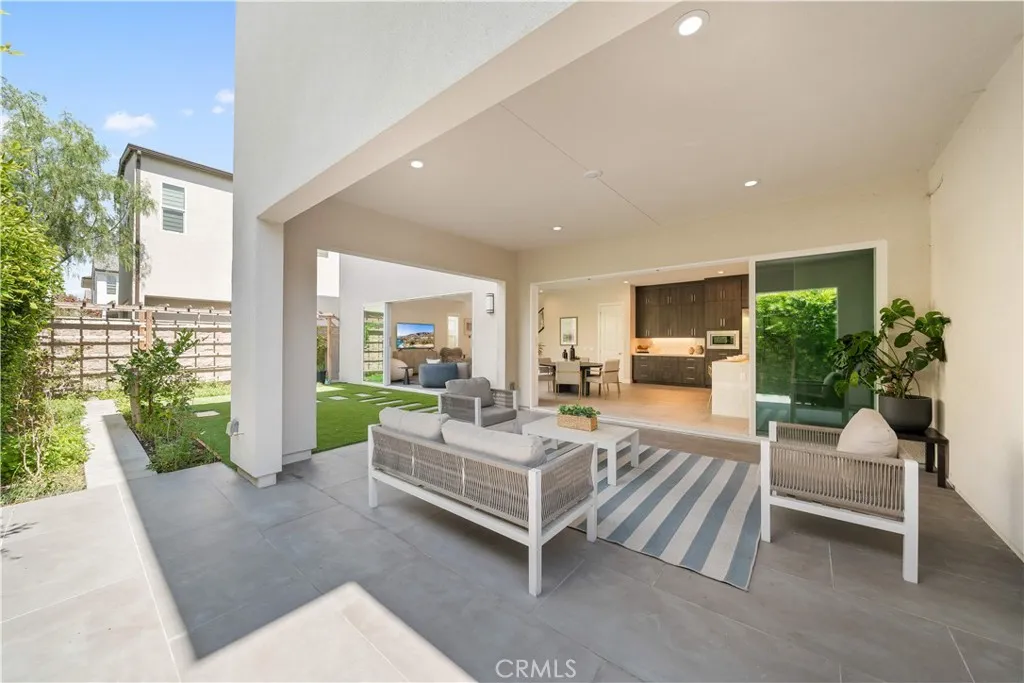 A truly exceptional opportunity in one of the most desirable front-row locations in The Meadows, this exceptional Toll Brothers Beechwood residence offers direct park and resort-style pool views with rare privacy and no homes directly in front. Featuring over $400,000 in architectural and designer upgrades, the home combines luxury finishes, an enhanced layout, and abundant natural light throughout.Perfectly positioned across from the community clubhouse, pool, and park, the residence showcases large-format designer tile flooring, engineered wood flooring upstairs, and a modern staircase with sleek glass panel railings, creating a bright and contemporary living environment.Located in the highly desirable Evergreens at The Meadows, the home welcomes you with an extended front porch and dramatic two-story foyer opening to a bright flex room and an expansive great room designed for modern living and entertaining. The gourmet chef’s kitchen features a waterfall-edge center island, quartz countertops, upgraded cabinetry, and professional-grade stainless steel appliances including a built-in oversized refrigerator, 6-burner gas cooktop, built-in oven and microwave, and a spacious walk-in pantry.A first-floor bedroom with en-suite bath provides flexibility for guests or multi-generational living. Upstairs, the primary suite offers a large walk-in closet and spa-inspired bathroom, while secondary bedrooms each include private bathrooms and generous closets centered around a spacious loft.Additional highlights include paid-off solar panels, EV charging readiness, powder room, laundry room, and ample storage. The property also benefits from No Mello-Roos and a low property tax rate of approximately 1.06%.Residents of The Meadows enjoy resort-style amenities including pools, spas, a dog park, and community gathering and co-working spaces, with convenient access to Irvine, major freeways, shopping, and dining.