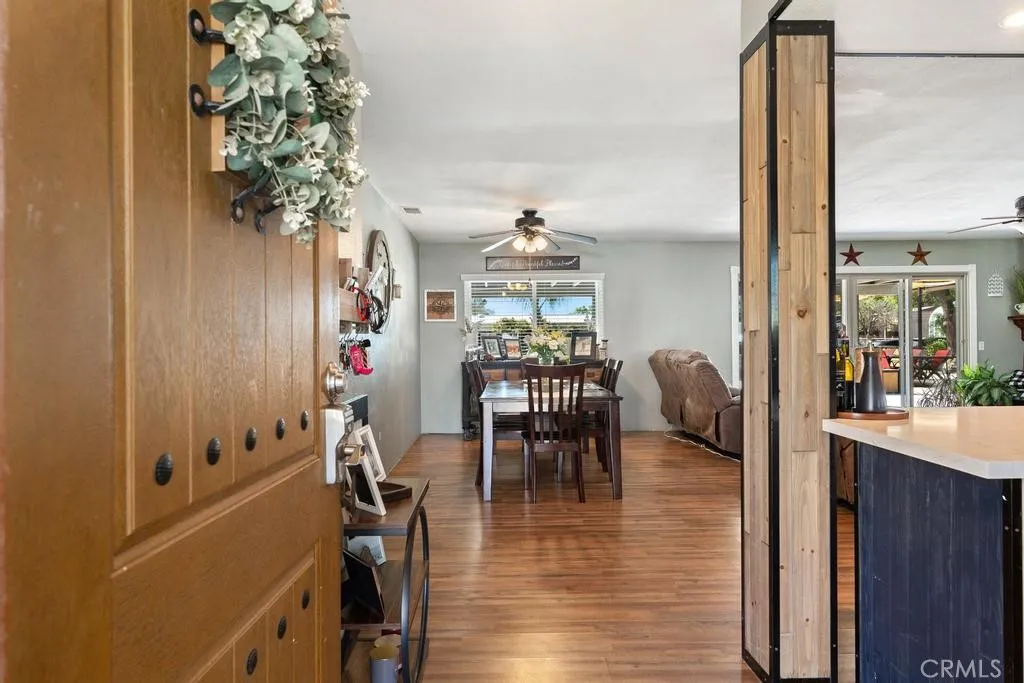 Welcome to 1581 Hackney St. This home is a must see! It offers almost an acre (.87) of outdoor living, great for all your toys! Remodeled interior with a light and airy open concept. Laminate flooring throughout, new quartz countertops, installed can lighting, freshly painted kitchen cabinets that offer plenty of cupboard space, accent barn wood pillars on island, cozy fireplace with hearth. New double pane window and slider, new front door. All 3 bedrooms are ample in size and both master bathroom and guest bath room have been completely remodeled with tile and shiplap. New water heater 2025, roof re-done 2025, all new pool equipment 2026, home was replumbed 2021. whole house fan and mini split have been installed. The exterior has so much to offer built in Pergola with poured concrete 2026. Built in planters with benches. Property has a detached shop/garage that is 30x40 partially drywalled with electricity with 110 and 200 amp panel, and solar panels. Shop/garage also has a 30amp outlet on the exterior of the shop for RV hook up. Horse stall, chicken coop, play station and crossed fencing for horses will remain. All that and lets not forget the inground pool and spa for those hot summer Hemet days and nights. Schedule your private showing today