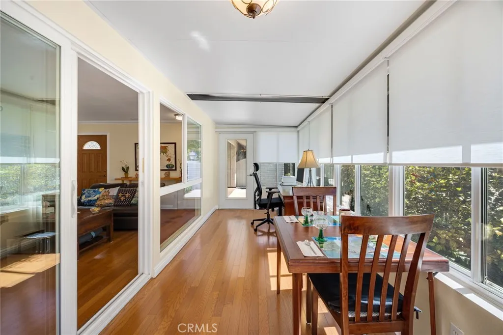 Pride of ownership shines throughout this immaculate, move-in ready Casa Linda residence in Laguna Woods Village, featuring no stairs and no one above or below. Thoughtfully updated and beautifully maintained, the home offers an enclosed sunroom with light and power, creating flexible bonus space for dining, relaxing, hobbies, or a home office. Enjoy energy-efficient comfort with dual-pane windows and patio doors, solar window screens, recessed lighting, and central heating and air conditioning. The interior has been recently repainted and is exceptionally clean, delivering a truly turnkey feel. The primary suite layout was reconfigured to open the space and enlarge the primary closet, and brand new full-size washer and dryer are included. With no interior steps and a convenient location near Gate 6 and close to carport parking, day-to-day living is easy and accessible. Additional privacy highlights include only one common wall. Laguna Woods Village offers an exceptional lifestyle with golf, swimming, fitness centers, pickleball and tennis, walking paths, and countless clubs and activities. Clubhouse 4 and the arts and crafts center are nearby, and residents can enjoy access to the golf course without leaving the gates. All information deemed reliable but not guaranteed; buyer to verify property features, permits, and community rules and eligibility requirements.