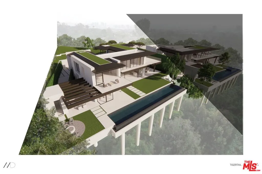 Perched in a prestigious Brentwood neighborhood, 747 North Tigertail Road presents an extraordinary opportunity to create a world-class estate in one of the Westside's most sought-after neighborhoods. Set on an expansive 28,519 square foot lot (.65 AC), the property captures spectacular canyon and ocean views, offering a breathtaking backdrop for a future architectural masterpiece. The offering includes RTI plans, surveys, and a slope density analysis, providing a valuable head start for the next owner to begin building their dream home with confidence and efficiency. The approved plans envision a stunning contemporary residence designed to blur the lines between indoor and outdoor living, thoughtfully positioned to maximize the property's sweeping vistas and natural, bluff-front surroundings. The proposed home would span an impressive 12,549 interior square feet across three expansive levels, featuring seven bedrooms and ten bathrooms, along with an array of luxury amenities including an infinity-edge pool and spa, fire pit, outdoor kitchen, rooftop deck, entertainment lounge with wet bar, screening room, gym, elevator, and a state-of-the-art wellness center. A luxurious primary wing serves as a private retreat, while the overall design prioritizes privacy, tranquility, and seamless flow for both everyday living and grand-scale entertaining. Located in a prime Brentwood enclave, the property is just moments from top-rated schools, The Getty, and the acclaimed dining and shopping along San Vicente Boulevard. With its rare scale, breathtaking views, and RTI Plans for an exceptional modern estate, 747 North Tigertail Road offers a remarkable opportunity to bring a visionary residence to life in one of Los Angeles' most desirable communities.