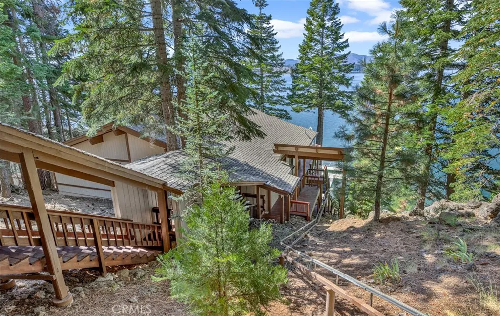 This stunning lakefront home offers panoramic views of Lake Almanor and Mount Lassen, just steps from Recreation Area 2 in Lake Almanor Country Club. With three levels of waterfront decks, a deep-water lot, and a large solar U-shaped dock with a boat slip, two wave runner slips, and two buoys, it’s the ultimate lakefront retreat. A 3-seat tram transports you and your groceries to the lake, and covered, lighted walkways provide year-round comfort. Inside, you'll find exquisite woodwork and master suite with 180-degree lake views, a cozy fireplace, and a luxurious-suite bathroom. The main floor also has a spacious deck and a jacuzzi room with redwood walls. The Great room features two-story windows, another fireplace, and seamless flow into the kitchen with granite countertops, stainless steel double ovens, and modern finishes. The lower level includes three bedrooms, two with deck access. Above the detached 2-car and golf cart garages is a charming apartment with lake views, two bedrooms, a full kitchen, and a wood stove. Enjoy amenities like summer bandshell concerts, pickleball, tennis, and more in this family-friendly community. This property is a true lakeside paradise, perfect for making lifelong memories!