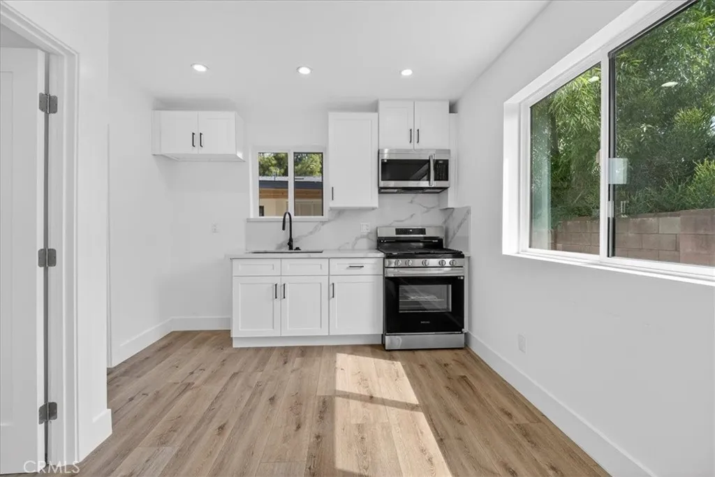 WELCOME TO YOUR NEW DREAM HOME! "Be the first to live in this newly completed 1-bedroom, 1-bath residence featuring a private entrance and convenient rear parking. Thoughtfully designed with high-end finishes throughout, the exterior showcases elegant lighting and a smooth Santa Barbara–style stucco finish, creating a refined and modern curb appeal. Inside, the home offers soaring ceilings, spacious living areas, and abundant natural light that fills the interior. The open living space flows seamlessly into a beautifully appointed kitchen equipped with brand-new stainless steel appliances. A washer and dryer are also included for added convenience, making this residence the perfect blend of luxury, comfort, and functionality. CALL TODAY THIS WILL NOT LAST!
