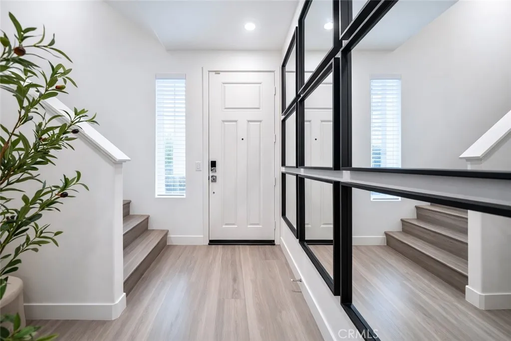 Welcome to this nearly new 4-bedroom, 3.5-bath home in Anaheim, just 10 minutes from CSUF and Fullerton College. Built only 2 years ago, this modern residence features a spacious 3-car garage with 220v power for EV charging, a whole-home water softener, smart nest thermostats, a ring doorbell, and a fully paid-off solar system that helps keep utility costs low. The open, light-filled layout captures beautiful early morning sunrises, creating a warm and inviting atmosphere to start your day. The spacious entry-level bedroom offers flexibility as a guest suite, home office, or multi-generational living space, providing exceptional convenience and privacy. The open kitchen features designer-selected cabinetry, high-end stainless steel smart appliances, a generous center island, and a walk-in pantry. Upstairs, the third floor features three well-appointed bedrooms, a convenient laundry room, and a versatile loft—perfect for a second living area, playroom, exercise or study space. Everyday convenience is unmatched with easy access to the 5, 57, & 91 freeways for commuting across Orange County. Just minutes away you’ll find Costco, In-N-Out, and the Anaheim Packing District. This turnkey home blends energy efficiency, modern technology, and an excellent North Orange County location—ready for its next owner to move right in. This is a rare opportunity to own the largest floor plan, with a rare 3-car wide garage, in a sold out neighborhood on a premium lot.