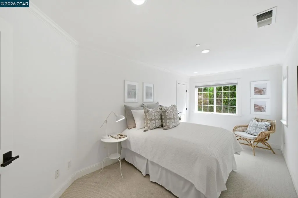 Timeless East Coast–inspired architecture meets California living at 3 Honey Hill Court. This home spans approx. 4,354 sq.ft. with 6 bedrooms and 4.5 baths. Five bedrooms are located upstairs, including a spacious primary suite with sitting room and walk-in closet, plus four additional bedrooms. An en-suite office or guest room on the main level offers ideal flexibility for working from home, hosting guests, or extended family. Formal living and dining rooms offer elevated entertaining spaces, while the updated kitchen that opens to the family room is a perfect setting for everyday living. Throughout the home custom millwork, wainscoting, coffered ceilings and designer-inspired finishes add warmth, character and timeless style. French doors open to both front and back yards, creating seamless indoor-outdoor flow for entertaining, outdoor play, and enjoying views of the Orinda hills. The backyard is anchored by a gorgeous stone wood-burning fireplace, perfect for cozy evenings and gatherings. A sport court next to the garage provides a play space for all ages. Ideally located minutes to Highway 24, BART, Orinda Country Club, and Sleepy Hollow School, this special property offers a rare blend of timeless architecture, thoughtful updates and an exceptional Orinda location.