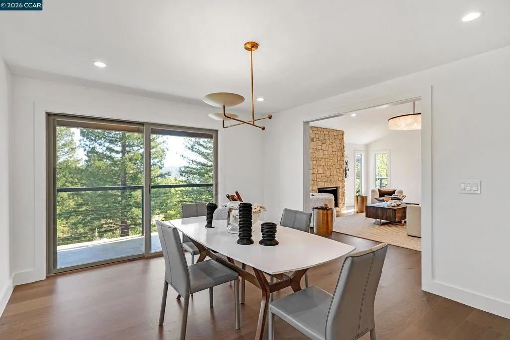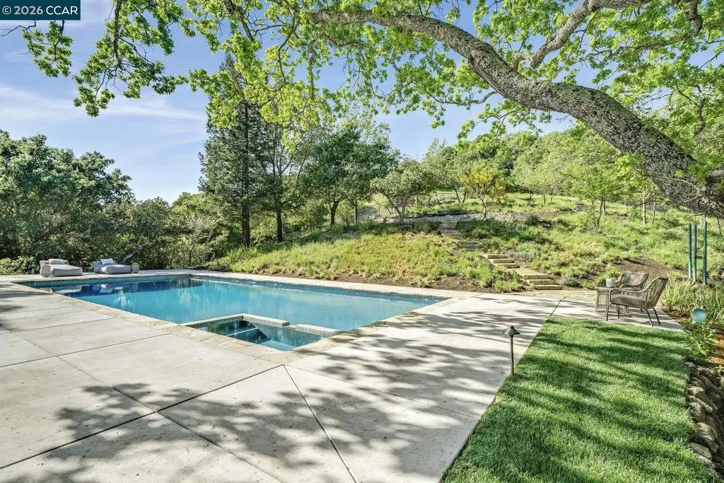 Tucked away on a private and secluded 1.91 acre lot in Lafayette’s sought after upper Happy Valley area near Olympic Oaks, 1059 Lizann Drive offers breathtaking views, exceptional privacy, and a rare sense of serenity while remaining just minutes from downtown Lafayette, BART, Highway 24, and Lafayette’s highly regarded schools. This beautifully reimagined 5 bedroom, 4.5 bathroom home spans approximately 3,900 square feet and has been extensively updated throughout with new composite exterior siding, new roof, new plumbing, new electrical, new windows, designer finishes, engineered hardwood floors, new baseboards, and recessed lighting. The phenomenal layout is ideal for everyday living and entertaining, highlighted by a massive living room with a stunning stone gas fireplace and abundant natural light from expansive windows and skylights. The chef’s kitchen features a breakfast bar, six burner gas range with griddle, double oven, walk in pantry, and a sink overlooking the backyard oasis. The private primary suite captures incredible views and a spa inspired bath with dual sinks, soaking tub, and walk in shower. The backyard is a true retreat with a newly upgraded pool, large grassy area, expansive patio, and sweeping hillside views. Perfect for relaxing or hosting gatherings.