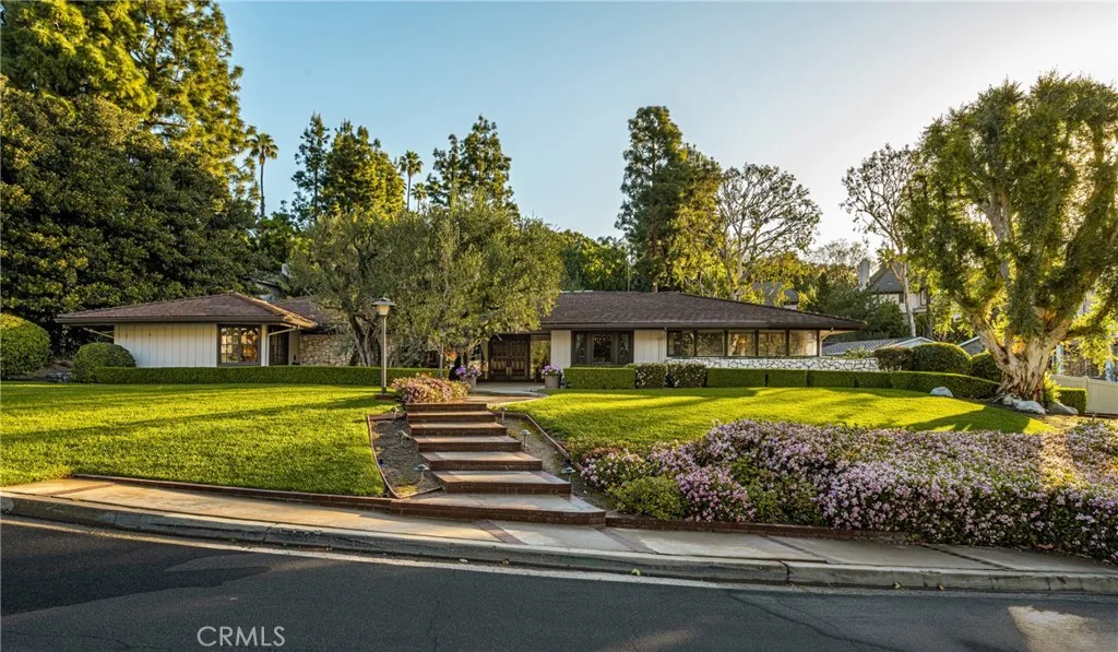 Beautiful Custom Built Ranch-Style home on one of Lemon Height's most sought after streets. The approach to the property is a wide flat street of similarly elegant custom homes with mature trees and lush landscape and the neighborhood is within walking distance to a back path directly into the Tustin Hills Racquet Club which offers tennis, pools, pickleball, classes, a gym and pilates. This elegant single story home with no interior steps is set on a sprawling almost half-acre lot with beautiful landscaping, a giant covered patio, charming gazebo and oodles of rolling green lawn. Meticulously designed for elegant entertaining and daily enjoyment, some of the interior highlights include handsome oak paneling and built-in bookcases, solid oak doors, French doors with beveled glass, floor-to-ceiling glass entry walls, two inviting fireplaces, and a fun walk-in wet bar. The floor plan is perfectly designed with ample living spaces that looks out to the pristine grounds. The formal living room is finished in fine box paneling and includes a marble-faced fireplace. The informal family room offers a second fireplace, game table and fun wet bar. A large dining room invites entertaining and the sunny kitchen opens to the family room and features a full breakfast nook. Bedrooms were well-designed with three bedrooms on one wing and a separate bedroom and bath on another. The primary bedroom opens to the covered patio and includes a lovely bath with step down shower and adjacent shade patio. The two additional bedrooms on this wing are elegant and oversized and share a bath. The guest or in-laws wing has it's own bath and is currently used as a home office. The home also includes a laundry room and powder bath. The garage faces the rear of the property and there is ample driveway space and parking. The North Tustin community offers award-winning schools, Peter's Canyon Regional park, close proximity to freeways - but feels like a world away! Beaches are 18 miles away. Mountains an hour and a half. Offered fully furnished, just bring your suitcases and move right in and start enjoying!