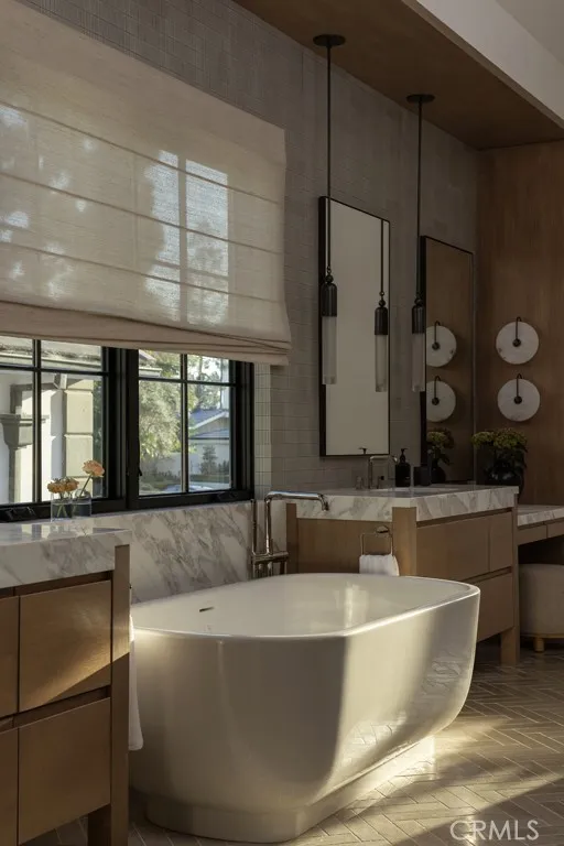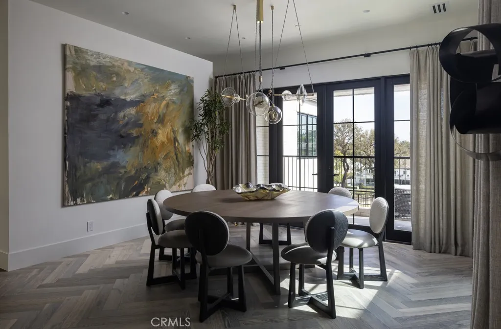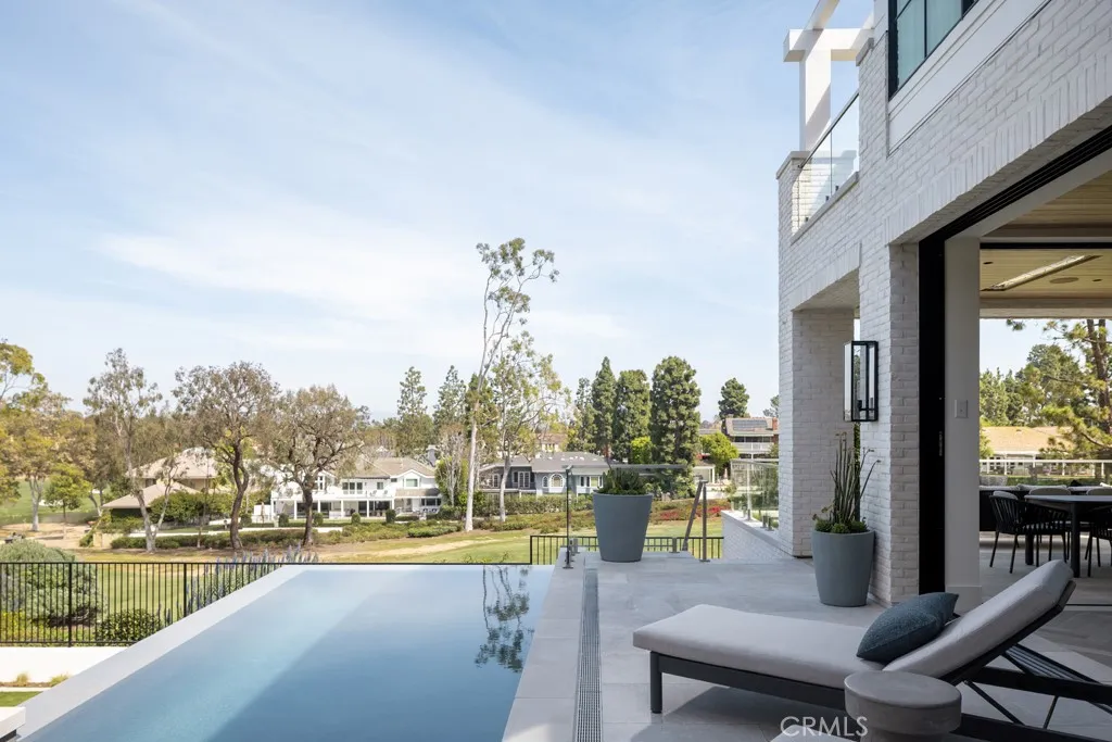Set within the guard-gated enclave of Big Canyon in Newport Beach, this newly completed residence by JFB Custom Homes, designed by Aust Architects with interiors by Morrison Interiors, reflects a quiet sophistication where natural materials, refined craftsmanship, and thoughtful proportions create a home of enduring serenity. A dramatic double-height entry with approximately 20-foot ceilings introduces the home, where bespoke lighting, rich herringbone wood flooring, and beautifully crafted custom cabinetry establish a quiet sense of luxury. From the foyer, a dramatic sightline extends through the home, across the infinity-edge pool to sweeping vistas of Big Canyon Country Club and the mountains beyond. Interiors are shaped by a palette of warm oak, honed stone, and soft natural textures, creating an atmosphere of effortless harmony throughout. Light filters through carefully framed openings, illuminating spaces that feel generous yet intimately scaled. At the heart of the home, the kitchen serves as both gathering space and sculptural focal point. An elegant stone island anchors the room beneath custom pendant lighting, while warm wood cabinetry and dramatic veined stone create a layered interplay of texture and tone. A fully appointed butler’s pantry with its own suite of appliances provides seamless support for both everyday living and entertaining. The great room opens fully through expansive pocketing walls of glass, dissolving the boundary between indoors and out and embracing the essence of Southern California living. Beyond, a dramatic infinity-edge pool and spa overlook panoramic views of Big Canyon Country Club, accompanied by a firepit terrace and heated outdoor loggia designed for elegant alfresco dining and year-round entertaining. The home includes 5 bedroom suites, a private office, gym, multiple bonus spaces, and 7.5 bathrooms, all connected by an elevator for effortless access between levels. The primary suite serves as a private retreat with vaulted ceilings, fireplace, and a serene balcony overlooking the fairways. Its spa-inspired bath features a Kallista soaking tub, Apparatus lighting, and exquisitely designed custom dual wardrobes. Positioned within the guard-gated enclave of Big Canyon, the residence represents a rare convergence of architecture, craftsmanship, and setting—an elevated coastal sanctuary designed for both grand entertaining and quiet everyday living.