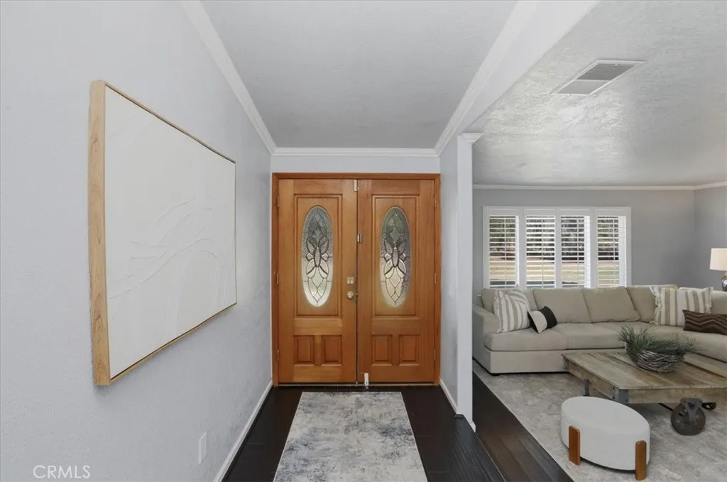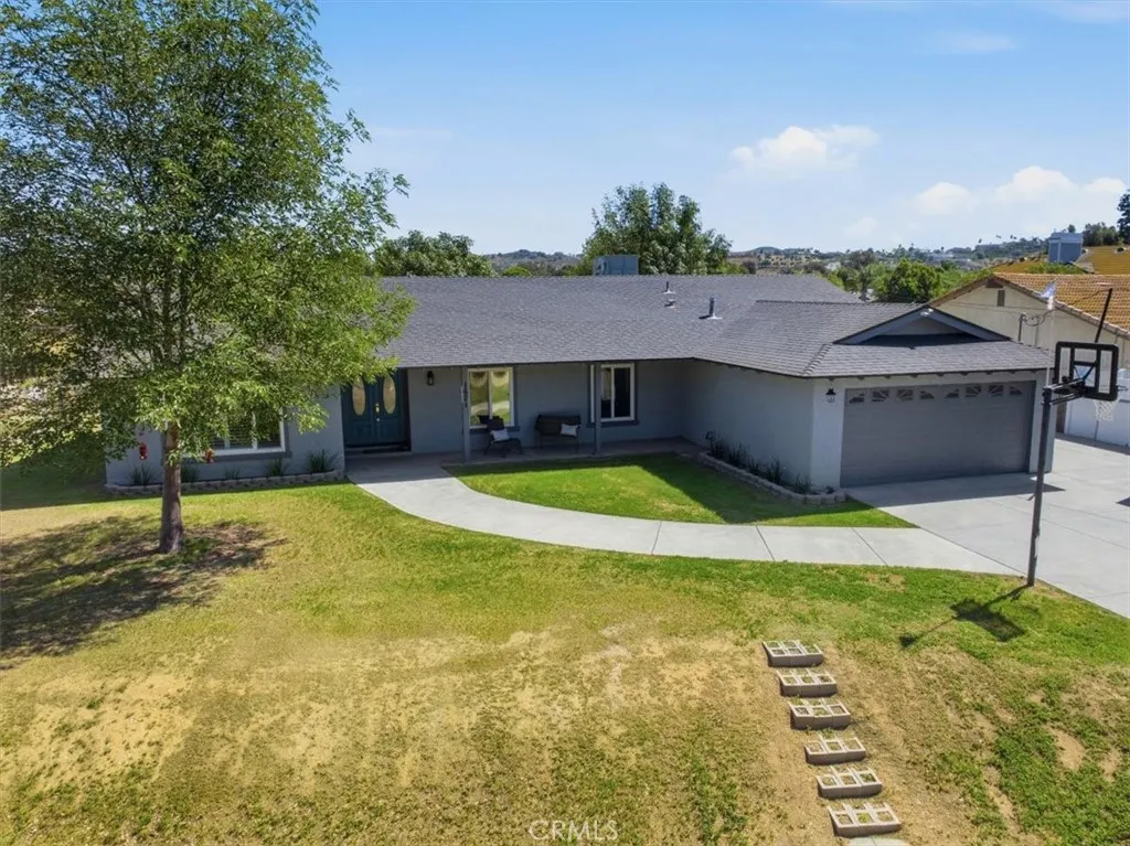 Here is your chance to own A spacious home in 'HORSETOWN USA" in a Fantastic location on a Flag shape lot for plenty of privacy! Beautiful views of the hills and valley from you backyard perfect to drink your coffee and watch the sunrise. This beautiful home features a open and spacious floorplan with larger bedrooms. 4 bedrooms for a large family and extra room. Double door entry with leaded glass that leads you to your foyer. The formal dining room and living room areas are perfect for entertaining and space. Or you can turn it into a game room. This is a versatile home with all the space you need. The kitchen has been upgraded with stainless steel appliances, Corian counter tops and solid wood cabinets. The cabinets have multiple pull outs draws making accessing you kitchen supplies easier. Family room has a gorgeous rock fireplace that ads charm and comfort to the room and beamed vaulted ceilings make the room look even larger. Guest bathroom has ton of cabinets perfect for all your linen and storage. Primary bathroom has a walk in shower. Upgrades include copper plumbing, dual pane windows, newer interior paint and exterior paint garage door opener. The front of the home is a perfect place to bring your horses and make your dream equestrian facilities and arena which is separated from the house. There is plenty of room for all your toys or room to build a workshop as well. There is ample RV parking with wide access on the side of the house or you can park them on the lower lot. This home has so much potential of usages and plenty of space to make it your own. Located close to the school and shopping adn the 15/91 freeways. Seller will be installing all new Sewer system prior to close of escrow